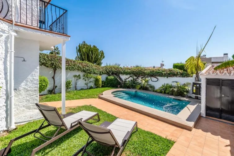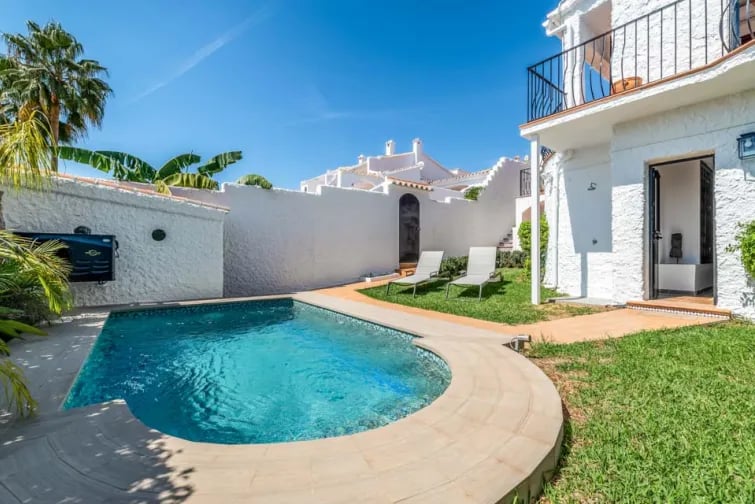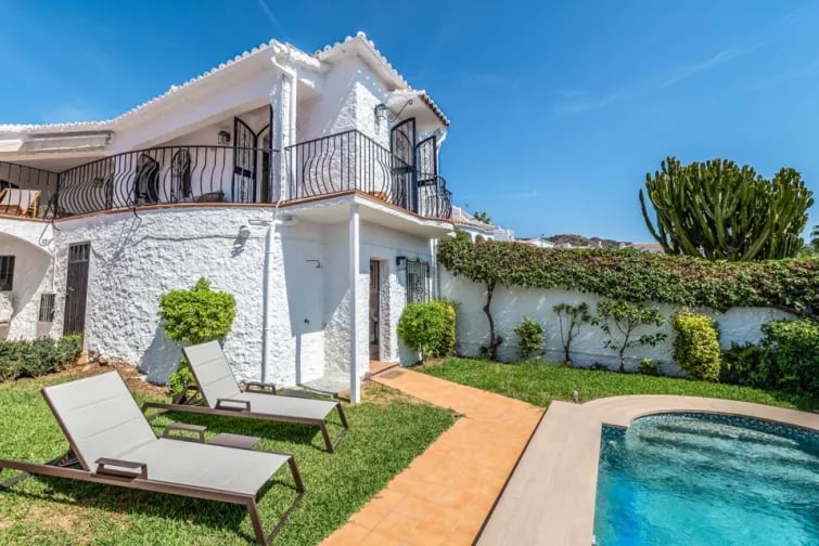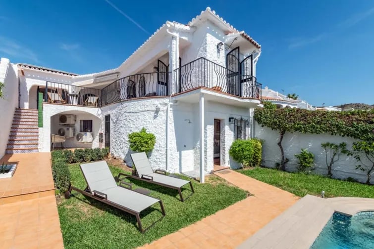 De villa ligt in een heuvelachtig gebied in het bovenste deel van Nerja en biedt een 180 graden uitzicht over de zee. U betreedt het pand via een pad van 123 cm breed en 6 treden die leiden naar de voordeur, die 74 cm breed is. De buitenruimtes bestaan uit betegelde terrassen en een zacht glooiend lager gelegen terras dat naar het zwembad leidt. Om het zwembad te bereiken, moet u 12 treden afdalen naar het lagere niveau, gevolgd door nog een extra trede. Het zwembad zelf is voorzien van Romeinse treden om in te stappen. Het pad naar het zwembad is 93 cm breed en de andere toegangsdeuren aan de buitenkant zijn 95 cm breed. Binnen in de villa zijn er hoogteverschillen en enkele interne treden. Bij binnenkomst is er een opstapje van 2 cm naar de keuken. Vanuit de keuken moet u een opstapje van 9 cm maken naar de eetkamer. Voor de slaapkamer met tweepersoonsbed en de familiebadkamer moet u een opstapje van 9 cm maken. De villa beschikt over slaapkamers en badkamers op de begane grond en in het souterrain. Op de begane grond bevinden zich een tweepersoonsslaapkamer met een deurbreedte van 66 cm en een familiebadkamer met een bad met douche. De benedenverdieping, bereikbaar via 12 treden, beschikt over een slaapkamer met twee eenpersoonsbedden en een eigen badkamer met een instaptrede van 21 cm. De deuren naar de slaapkamer en badkamer op de benedenverdieping zijn respectievelijk 66 cm en 55 cm breed. De keuken/eetkamer is toegankelijk via een entree van 95 cm breed, terwijl de woonkamer ruim is met een entree van 95 cm breed. Hoewel de villa een prachtig uitzicht biedt en goed ingerichte ruimtes, kunnen de vele trappen en interne hoogteverschillen een uitdaging vormen voor mensen met een beperkte mobiliteit. *Houd er rekening mee dat de verstrekte informatie zo nauwkeurig mogelijk moet zijn, maar dat er toch fouten kunnen optreden. Mocht u meer specifieke informatie over de villa nodig hebben, neem dan gerust contact met ons op.