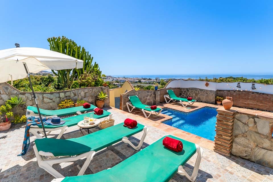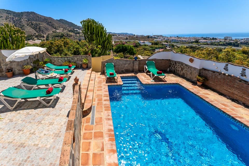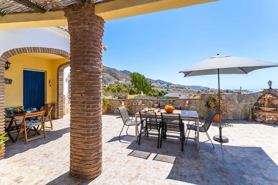Deze schilderachtige, comfortabele villa ligt in Nerja, Costa del Sol, met aan de ene kant een bergachtig landschap en aan de andere kant de glinsterende blauwe zee. U zult niet teleurgesteld zijn als het gaat om het uitzicht vanaf deze woning.