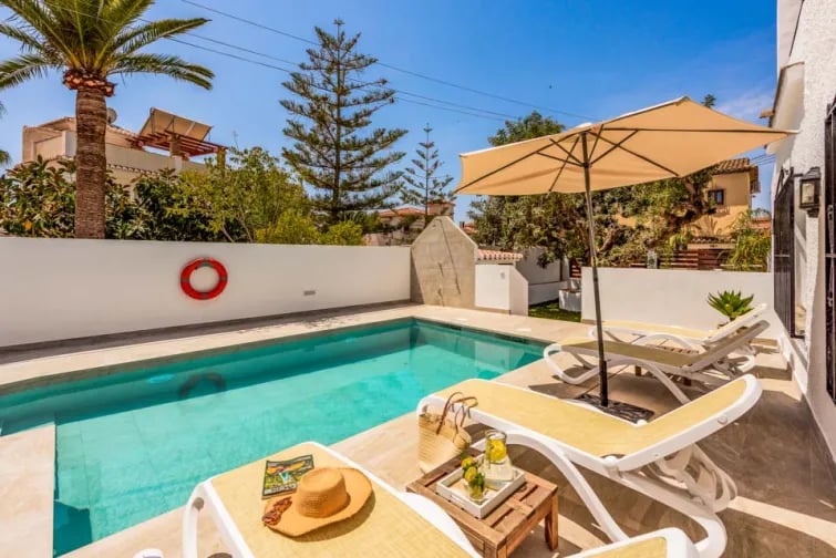 Handdoeken voor bij het zwembad, Outdoor Pool, Zwembad, Loungestoelen, Parasol, Privé zwembad, Sun terrace