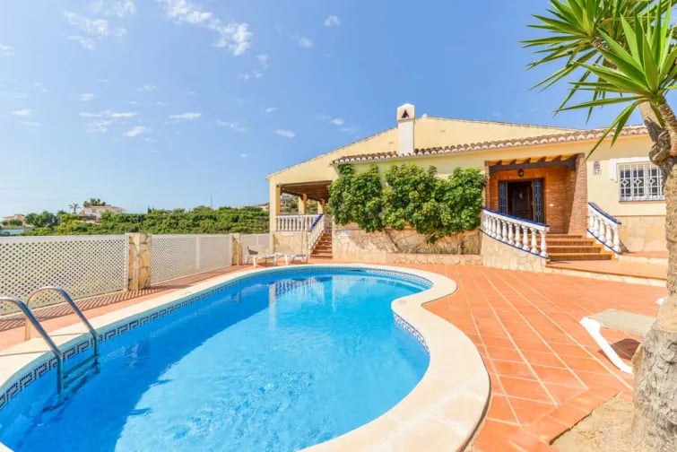 Het interieur is helder verlicht door de overvloed aan natuurlijk licht dat door de grote glazen ramen naar binnen valt. De drie slaapkamers zijn ontworpen om een sfeer van openheid en warmte te creëren en vormen een heerlijke rustplek na een drukke dag op het strand. Zak weg in de gezellige leefruimte met zachte banken en een ouderwetse open haard die u het gevoel geeft van een traditioneel Spaans huis. De keuken is shabby chic ingericht, met stijlvolle grenenhouten kasten en hoogwaardige apparatuur, perfect voor het bereiden van culinaire creaties.