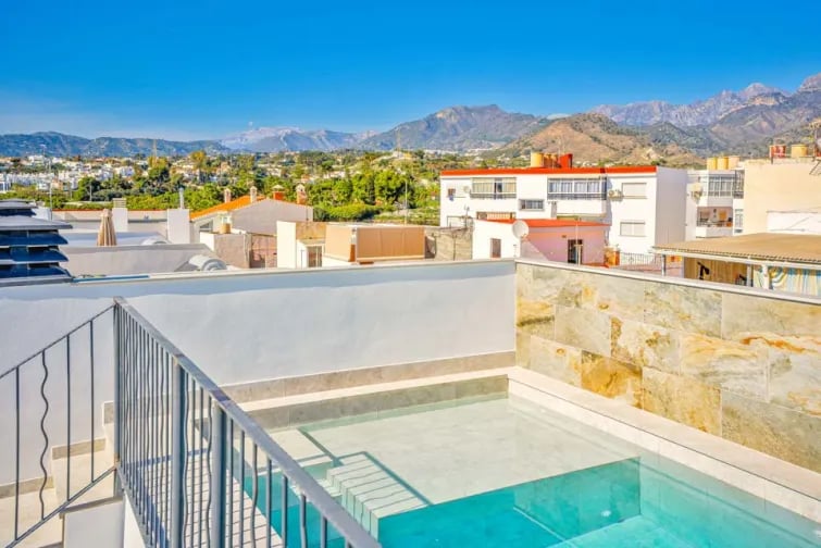 In de ochtend kunt u op ontdekkingstocht gaan in het charmante stadje Nerja. Wandel door de geplaveide straten, geniet van de bloeiende geschiedenis en proef de authentieke Spaanse keuken. Terwijl de middagwarmte inzet, wacht uw serene schuilplaats op u, klaar om u te verwelkomen na een dag vol avonturen. Strek u uit op een zonovergoten ligstoel, neem een verfrissende duik in uw privézwembad op het dak en laat het kalme water over u heen spoelen. In deze oase van rust en ontspanning kunt u optimaal ontspannen. Wanneer het tijd is om bij te tanken, is uw eethoek in de openlucht de ideale plek voor heerlijke diners bij zonsondergang. Geniet van gegrilde lekkernijen op de BBQ en bereid verse salades terwijl u samen mooie verhalen vertelt over de avonturen van de dag. Het is allemaal te dromerig!