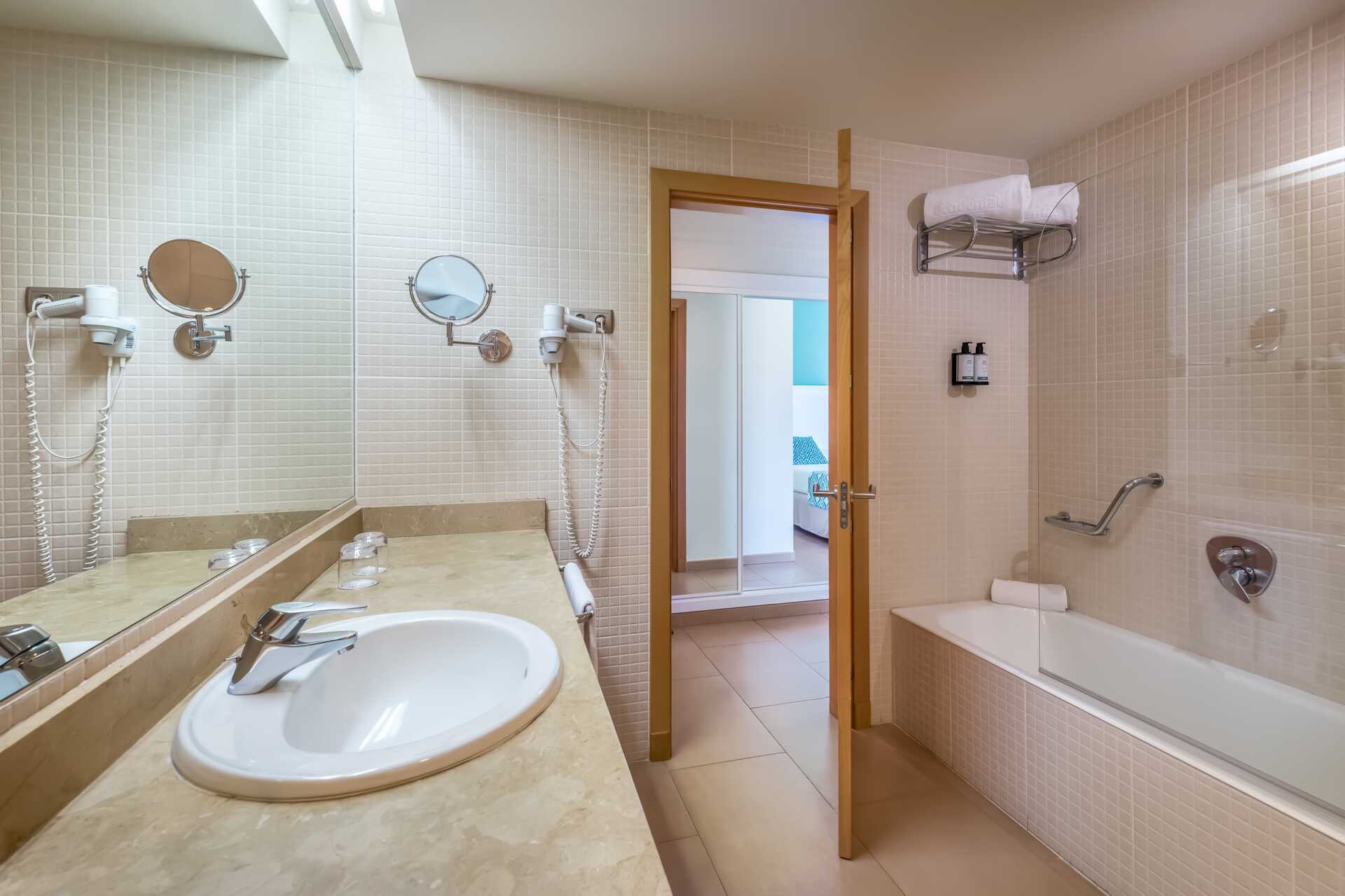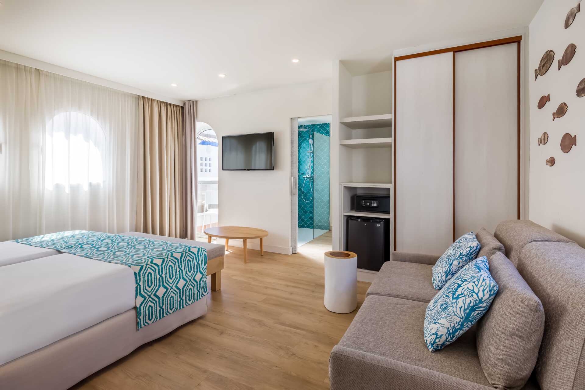 Familiekamer met balkon. Een tweepersoonsbed of twee eenpersoonsbedden. Mogelijkheid voor extra bedden in slaapbank. Wifi en airconditioning inbegrepen. Kluisje tegen betaling. Minibar tegen betaling. Tv met internationale zenders. Föhn. Badkamer met bad of douche en toilet. Schoonmaak 5 keer/week. Sommige van deze kamers zijn niet met de lift bereikbaar.