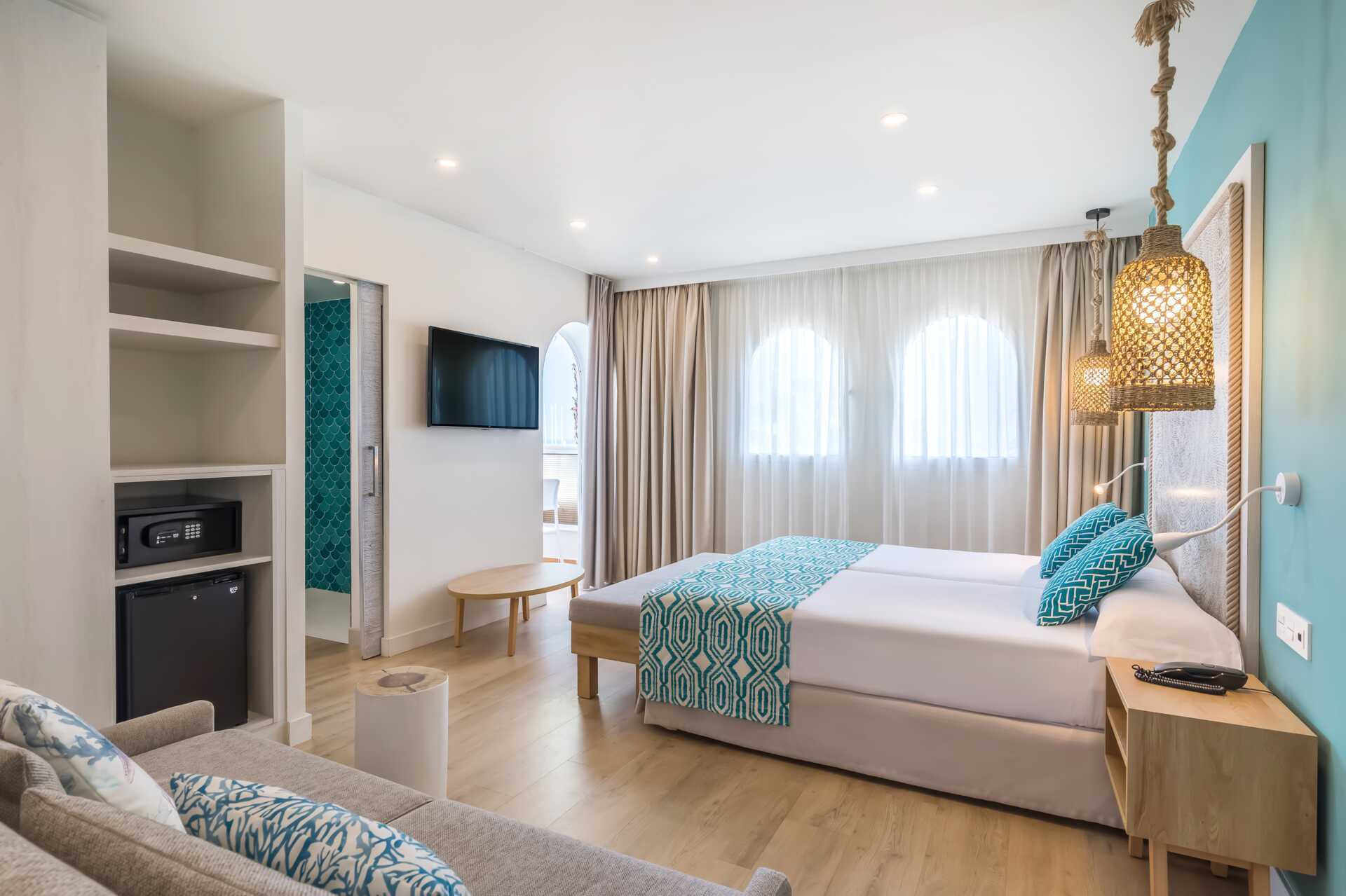Tweepersoonskamers met balkon, sommige met beperkt uitzicht op zee. Een tweepersoonsbed of twee eenpersoonsbedden. Wifi en airconditioning inbegrepen. Kluisje tegen betaling. Minibar. Tv met internationale zenders. Föhn. Badkamer met douche en toilet. Schoonmaak 5 keer/week.