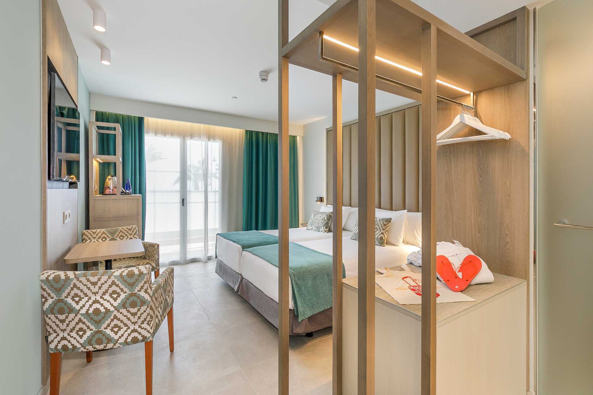 Tweepersoonskamer met balkon en uitzicht op zee. Een tweepersoonsbed of twee eenpersoonsbedden. Wifi, airconditioning en kluisje inbegrepen. Koelkast. Tv met internationale zenders. Föhn. Badkamer met bad of douche en toilet. Schoonmaak 7 keer/week.
