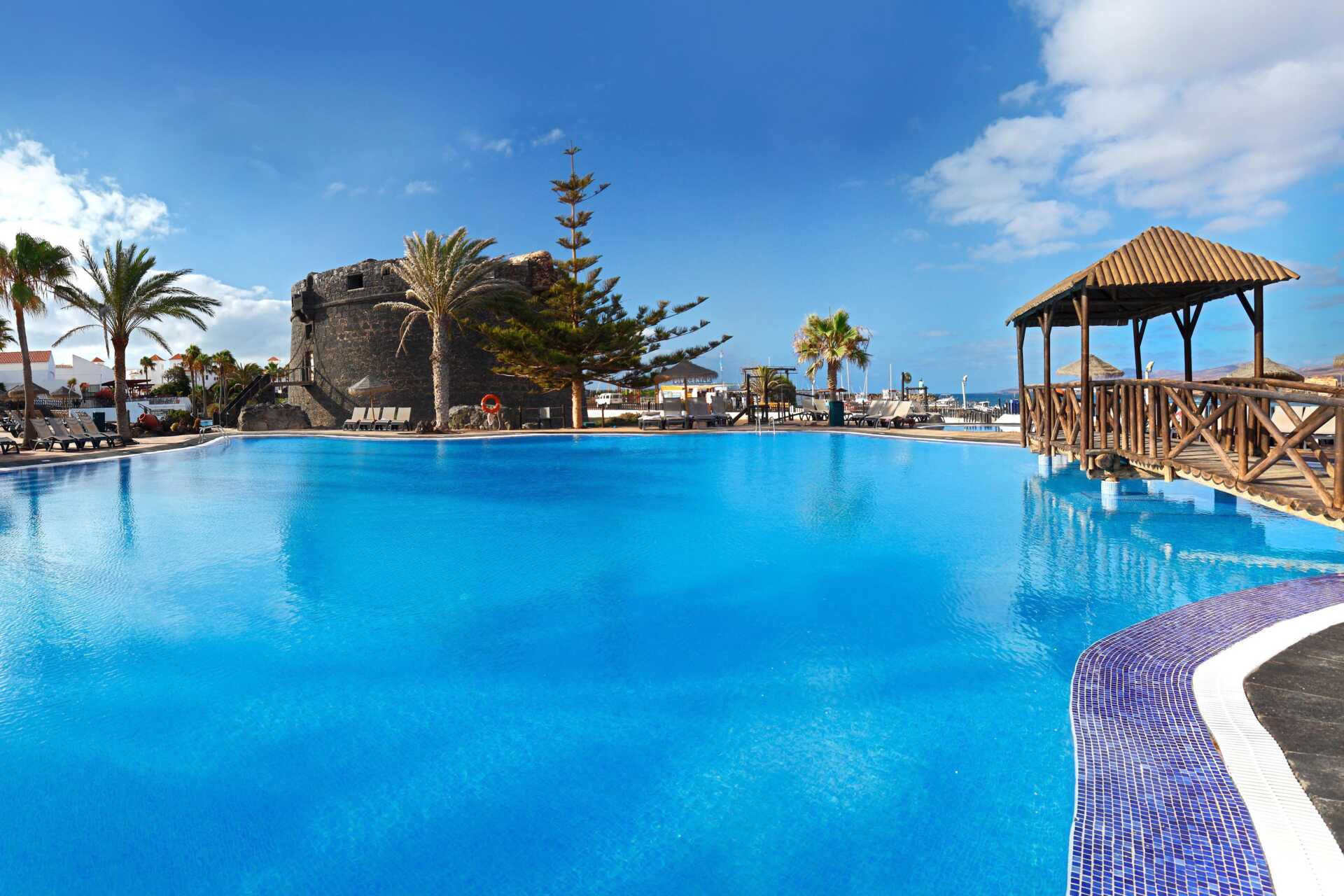 Barceló Fuerteventura Castillo heeft een zwembadgedeelte met twee zwembaden die uitkijken over de zee. Eén van de zwembaden is van november tot en met maart verwarmd tot minimaal 24 graden. De zwembadtemperatuur kan echter 's ochtends, 's avonds en bij slecht weer een paar graden dalen. Ligstoelen en parasols. Badhanddoeken tegen borg en wissel tegen betaling. Poolbars en snackbars die eenvoudigere gerechten serveren. Kinderzwembad vlakbij de kinderclub.