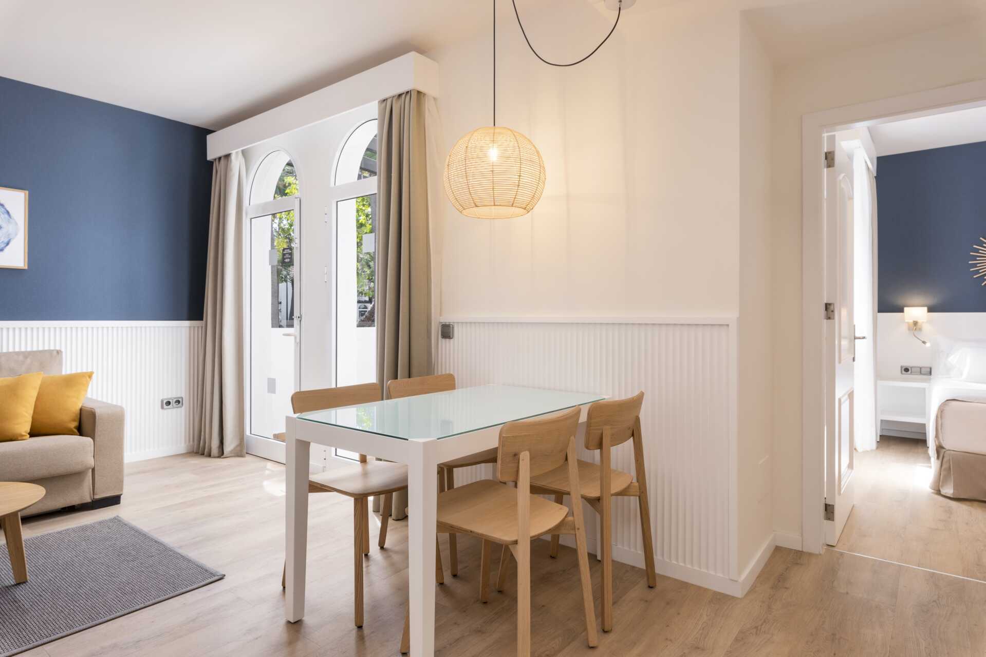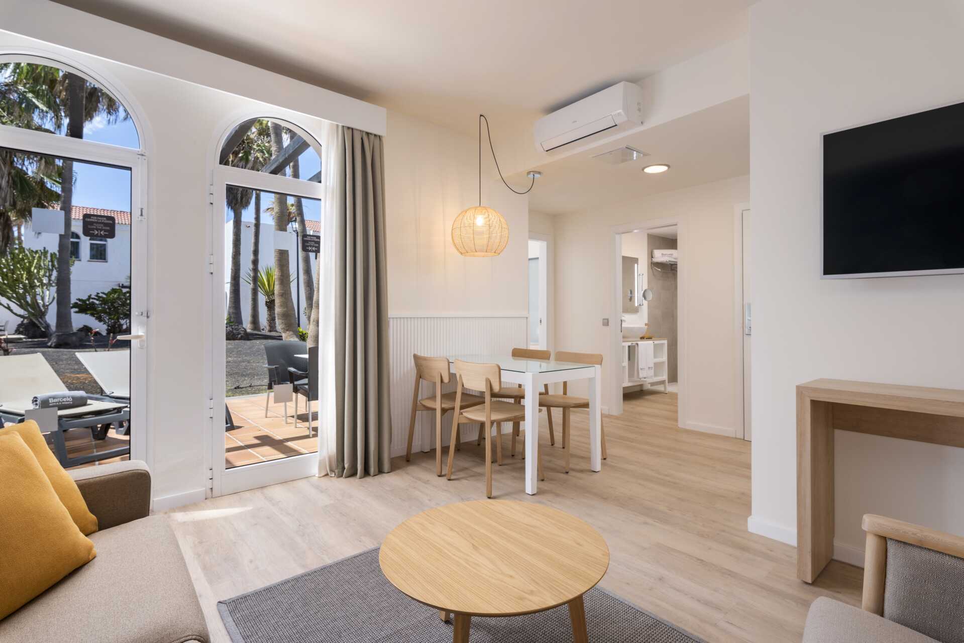 Tweekamerappartement gelegen in bungalowgebouwen verspreid over de omgeving. Balkon of terras, sommige appartementen hebben twee terrassen. De appartementen hebben verschillende indelingen. Een slaapkamer en een gecombineerde woonkamer met kitchenette. Een tweepersoonsbed of twee eenpersoonsbedden. Mogelijkheid voor extra bedden in slaapbank. Minikeuken met koelkast en vriezer, kookplaten, magnetron, koffiezetapparaat, broodrooster, waterkoker en eenvoudige keukenapparatuur. Tv met internationale zenders. Wifi en airconditioning inbegrepen. Kluisje tegen betaling. Föhn. Badkamer met bad of douche en toilet. Schoonmaak 7 keer/week.