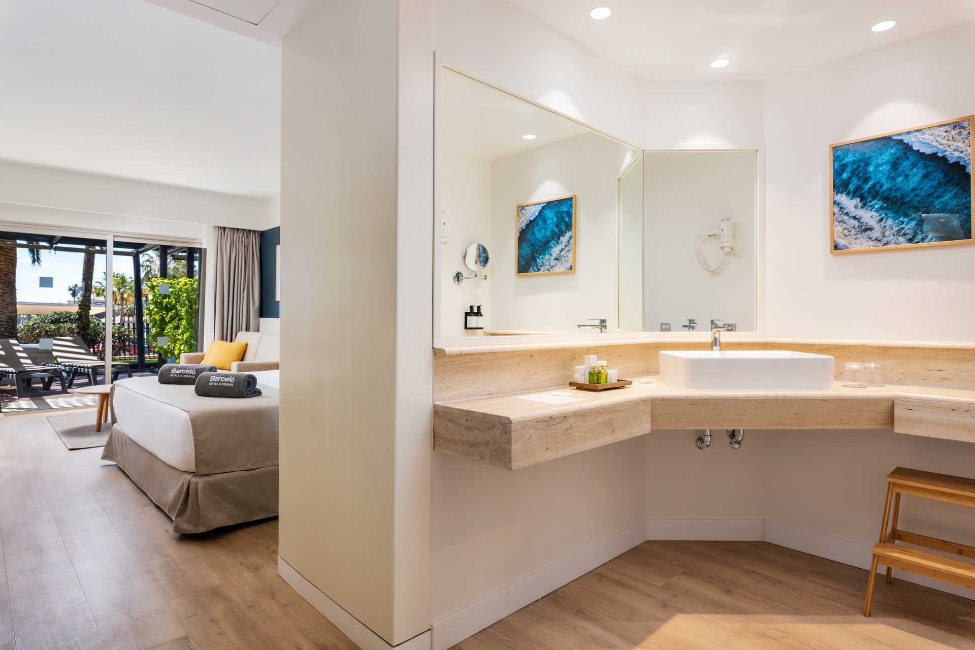 Deluxe kamers met balkon of terras, sommige met uitzicht op zee. Een tweepersoonsbed of twee eenpersoonsbedden. Kussenmenu. Mogelijkheid voor een extra bed op de slaapbank. Wifi, airconditioning en kluis inbegrepen. Minibar tegen betaling. Nespresso-apparaat. Televisie met internationale zenders. Badjassen en slippers Föhn. Badkamer, gedeeltelijk open naar de kamer, met aparte douche en toilet. Schoonmaak 7 keer/week.
