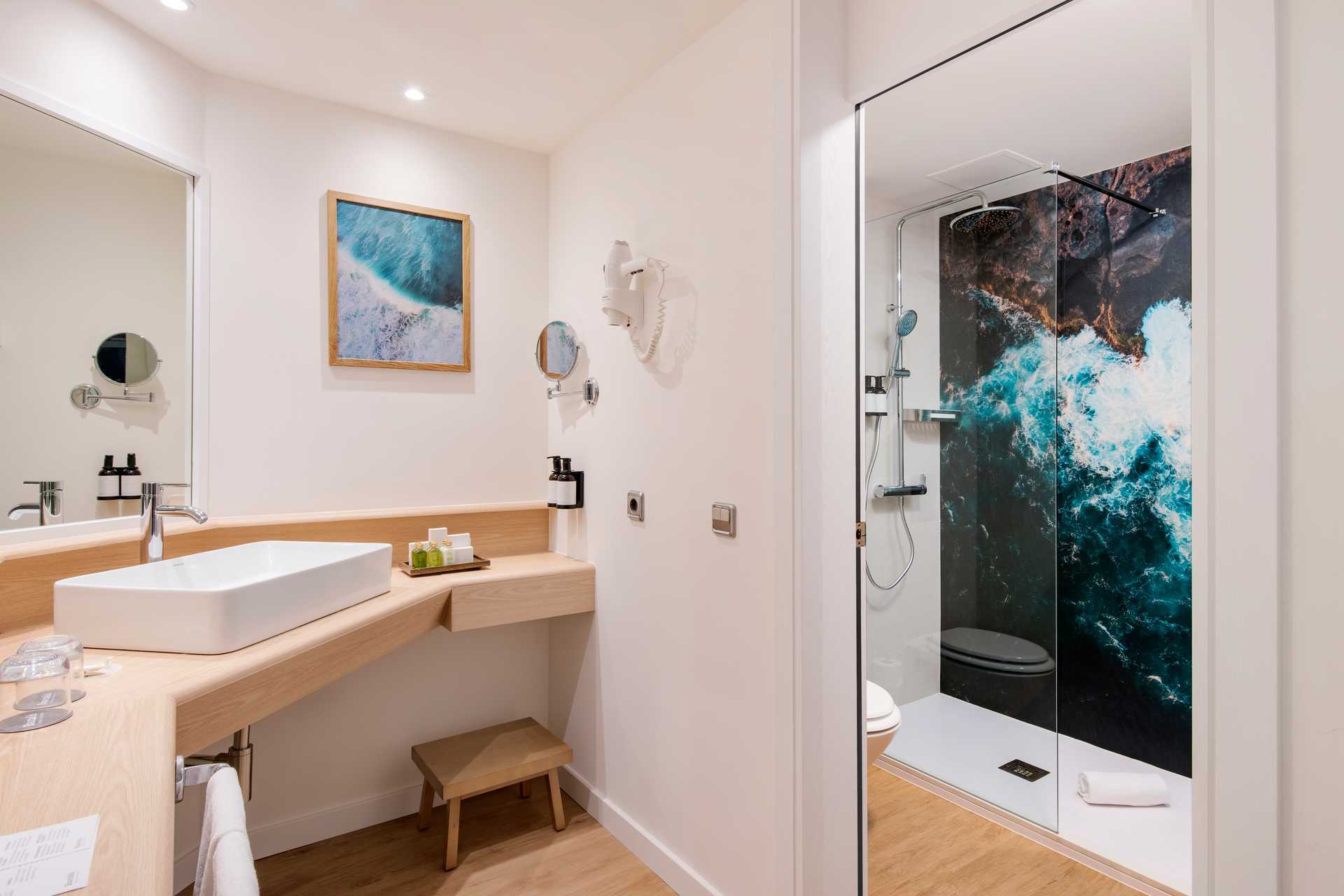 Tweepersoonskamer met balkon of terras, sommige met uitzicht op zee. Een tweepersoonsbed of twee eenpersoonsbedden. Mogelijkheid voor extra bed in slaapbank. Wifi en airconditioning inbegrepen. Kluisje tegen betaling. Minibar tegen betaling. Waterkoker en koffie en thee. Tv met internationale zenders. Föhn. Badkamer, deels open naar de kamer, met aparte douche en toilet. Schoonmaak 7 keer/week.