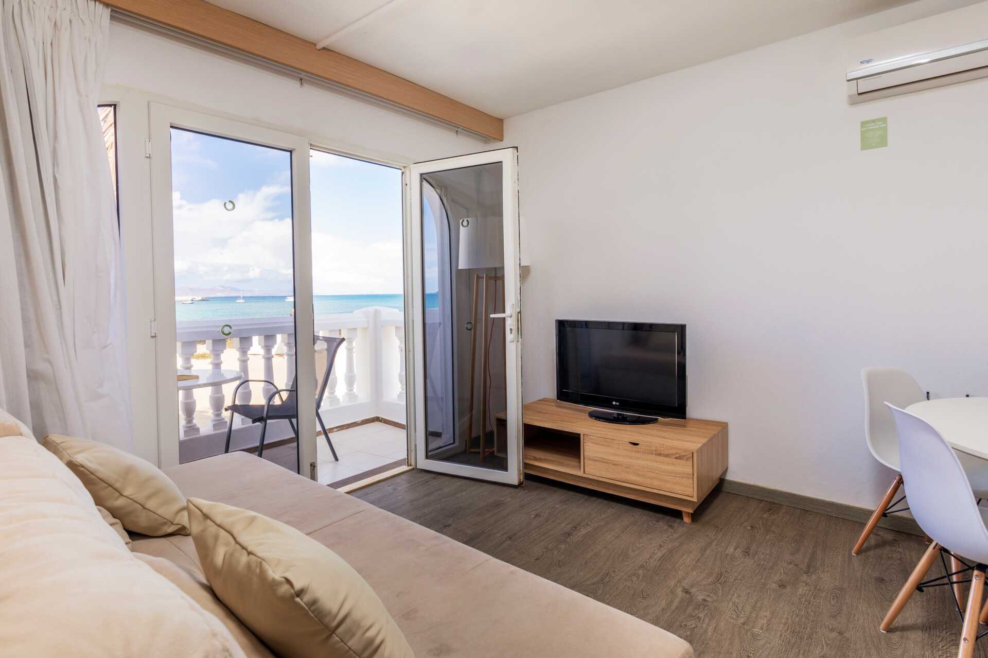 Tweekamerappartementen met balkon en uitzicht op zee. De appartementen hebben verschillende indelingen. Slaapkamer en gecombineerde woonkamer met kitchenette. Twee eenpersoonsbedden. Mogelijkheid voor een extra bed op de slaapbank. Minikeuken met koelkast. kookplaten, magnetron, waterkoker, broodrooster en basiskeukenapparatuur. Er is ook een koffiezetapparaat in het appartement, capsules zijn niet inbegrepen, maar kunnen bij de receptie worden gekocht. Wifi inbegrepen. Airconditioning is inbegrepen en is alleen beschikbaar in de woonkamer. Kluis tegen betaling. TV met lokale zenders. Badkamer met douche en wc. Schoonmaak 7 keer/week.