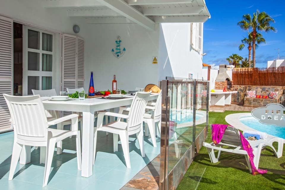 Een Solmar Villa is niet compleet zonder een eigen privézwembad en het zwembad van Villa Field Dreams is perfect voor een snelle duik om af te koelen in de warme Spaanse zon. De buitenruimte is ideaal om buiten te dineren met de stenen barbecue, en biedt zowel een overdekt terras met een eethoek als een ruime eettafel in de stralende zon. Als je graag zonnebaadt, zijn er genoeg ligstoelen om je dagen ontspannen door te brengen met een goed boek.