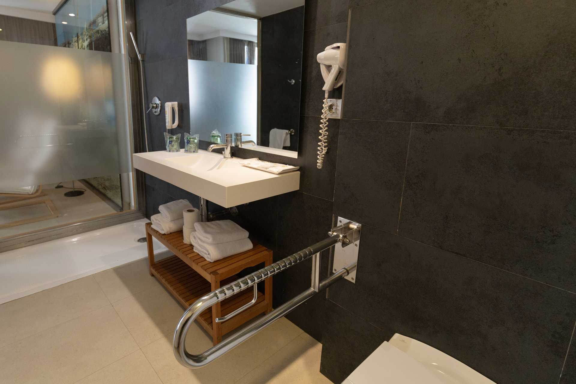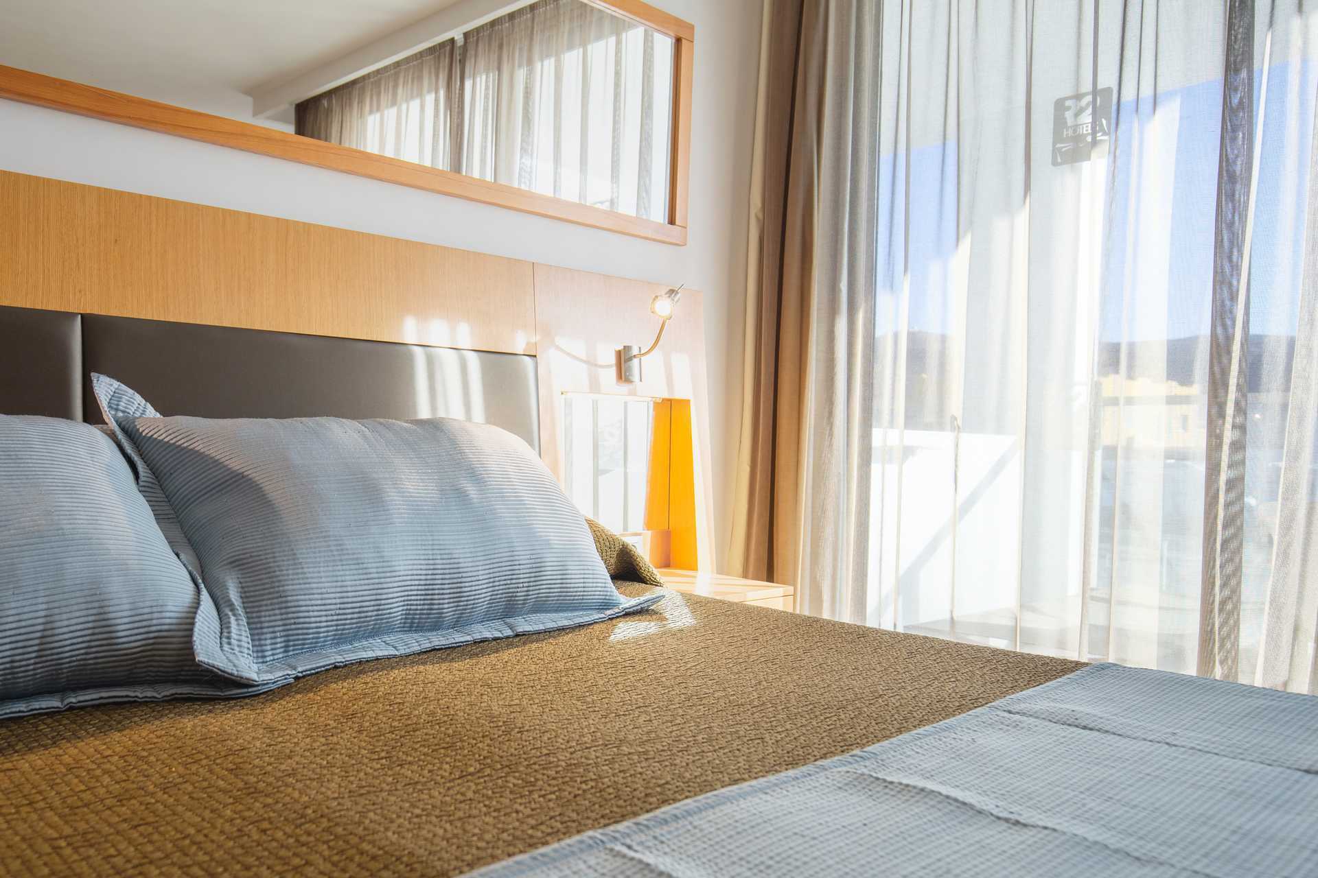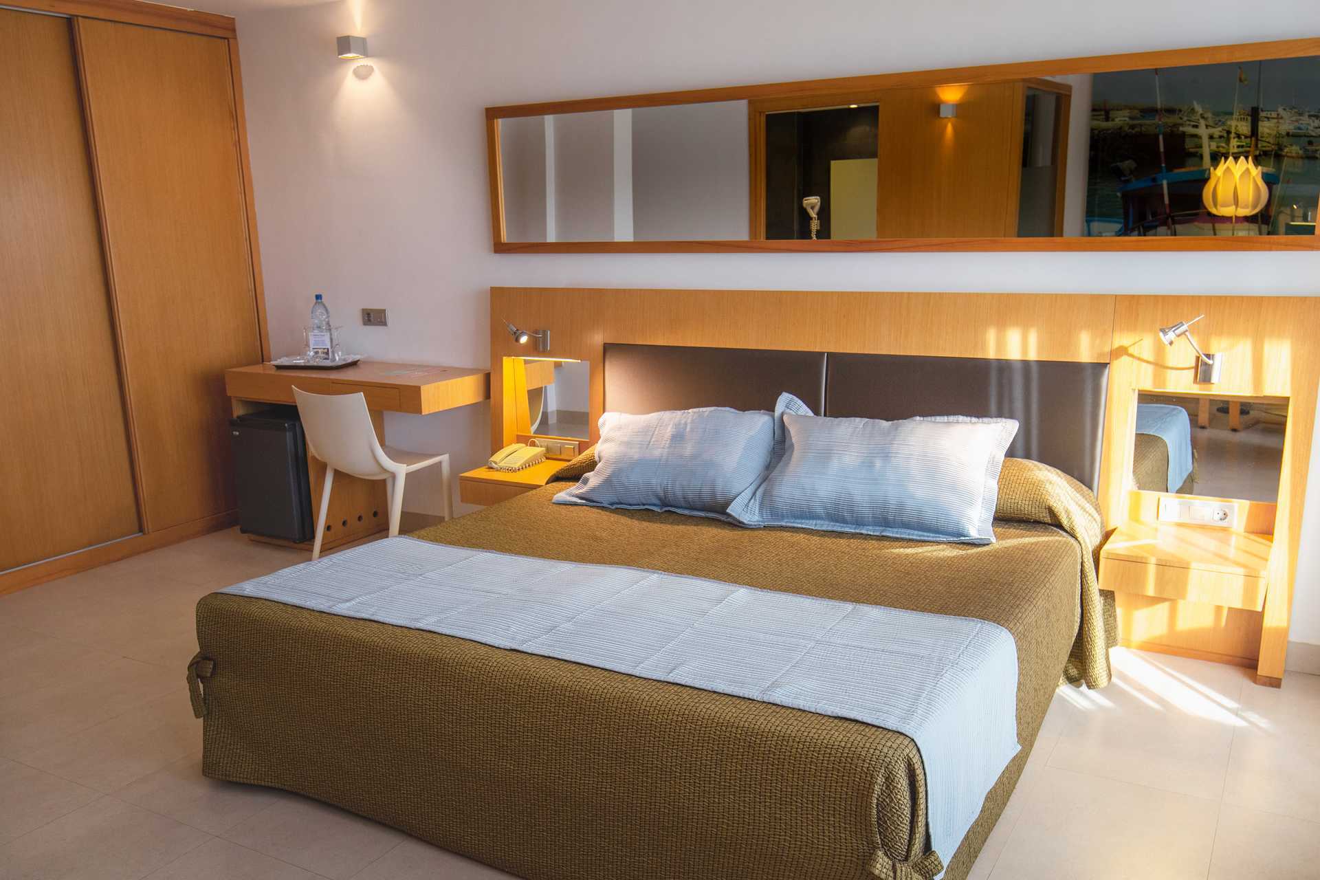 Tweepersoonskamer met balkon of terras met Zwembadzicht of Zeezicht. Twee eenpersoonsbedden. Wifi en centraal geregelde airconditioning inbegrepen. Kluisje tegen betaling. Minibar. Tv met internationale zenders. Föhn. Badkamer met douche en toilet. Schoonmaak 7 keer/week.