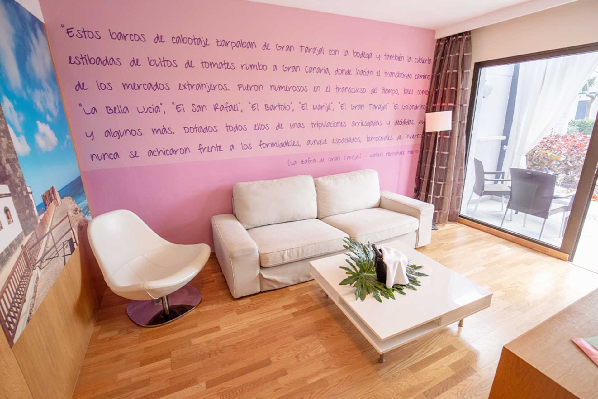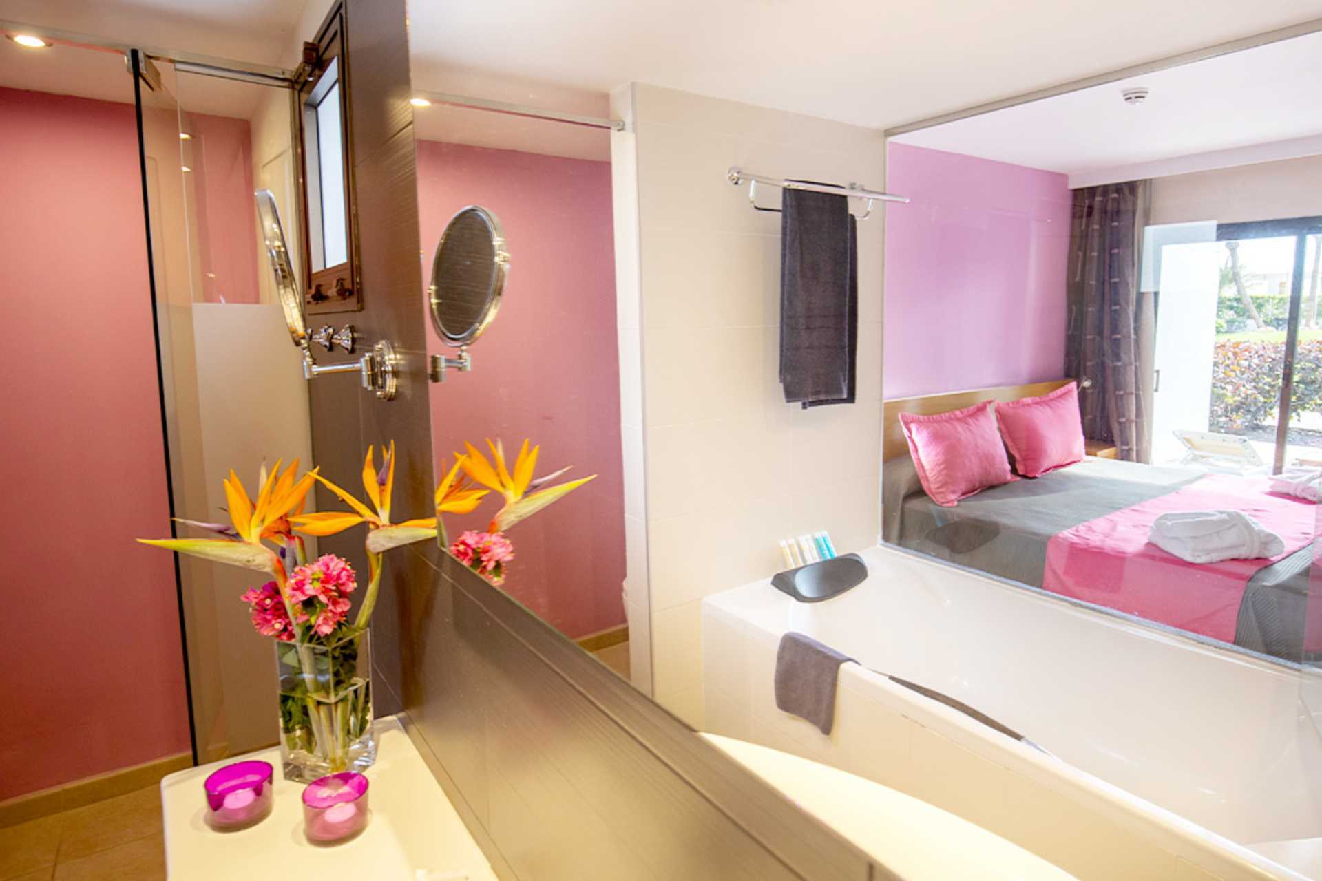 Superior suite met grondterras. De suite bestaat uit een woonkamer en een slaapkamer. Een tweepersoonsbed. Mogelijkheid voor een extra bed in de vorm van een slaapbank. Wifi en airconditioning inbegrepen. Kluisje tegen betaling. Minibar. Waterkoker, koffie en thee. Tv met internationale zenders. Badjassen en hotelslippers. Zwembad- en strandhanddoeken. Föhn. Badkamer met ligbad voor twee, douche en wc. Matglazen wand tussen de badkamer en slaapkamer. Schoonmaak 7 keer/week.