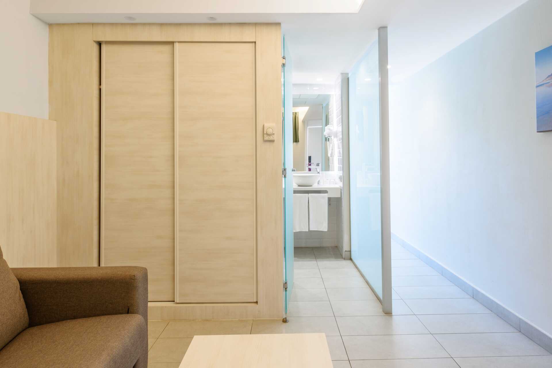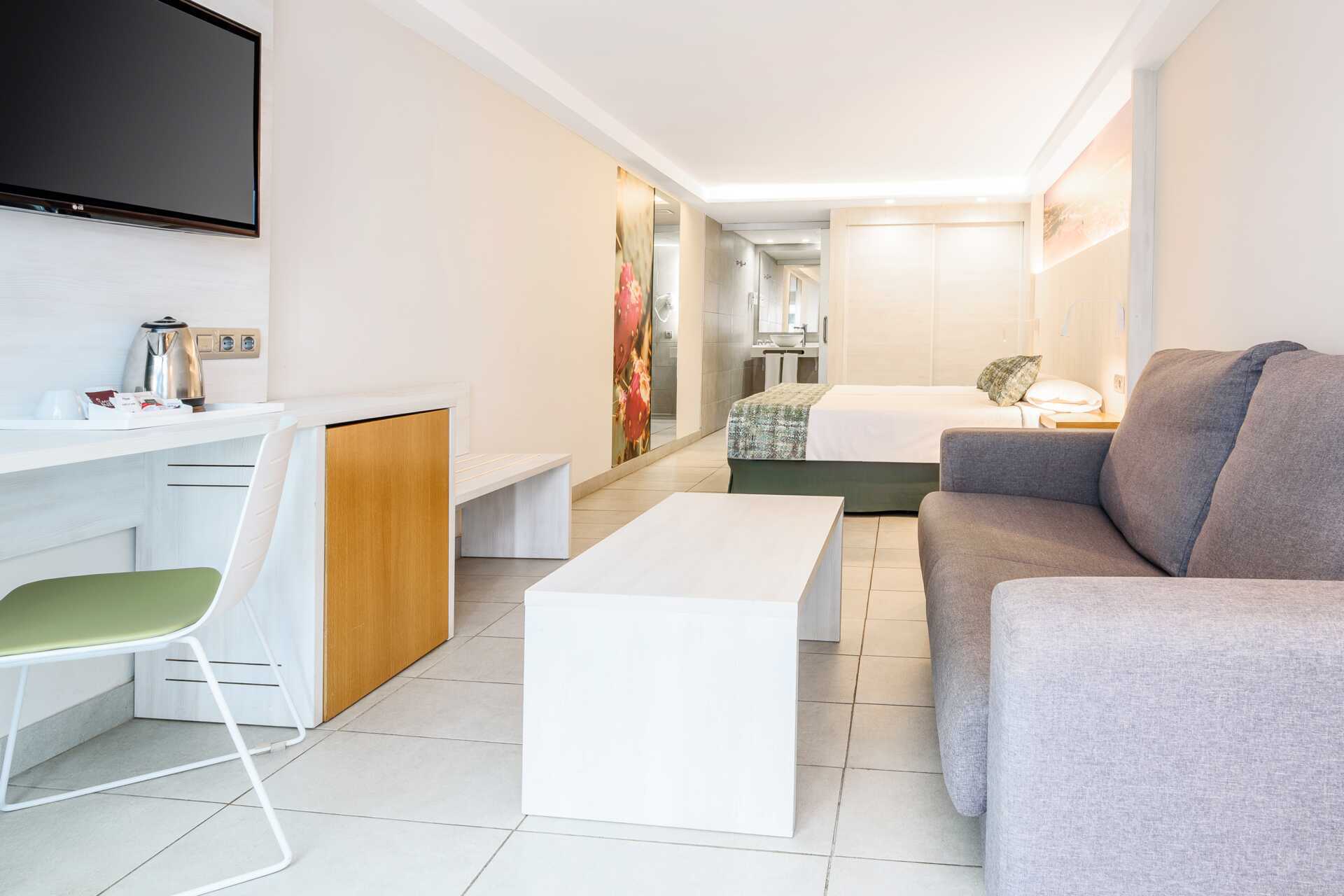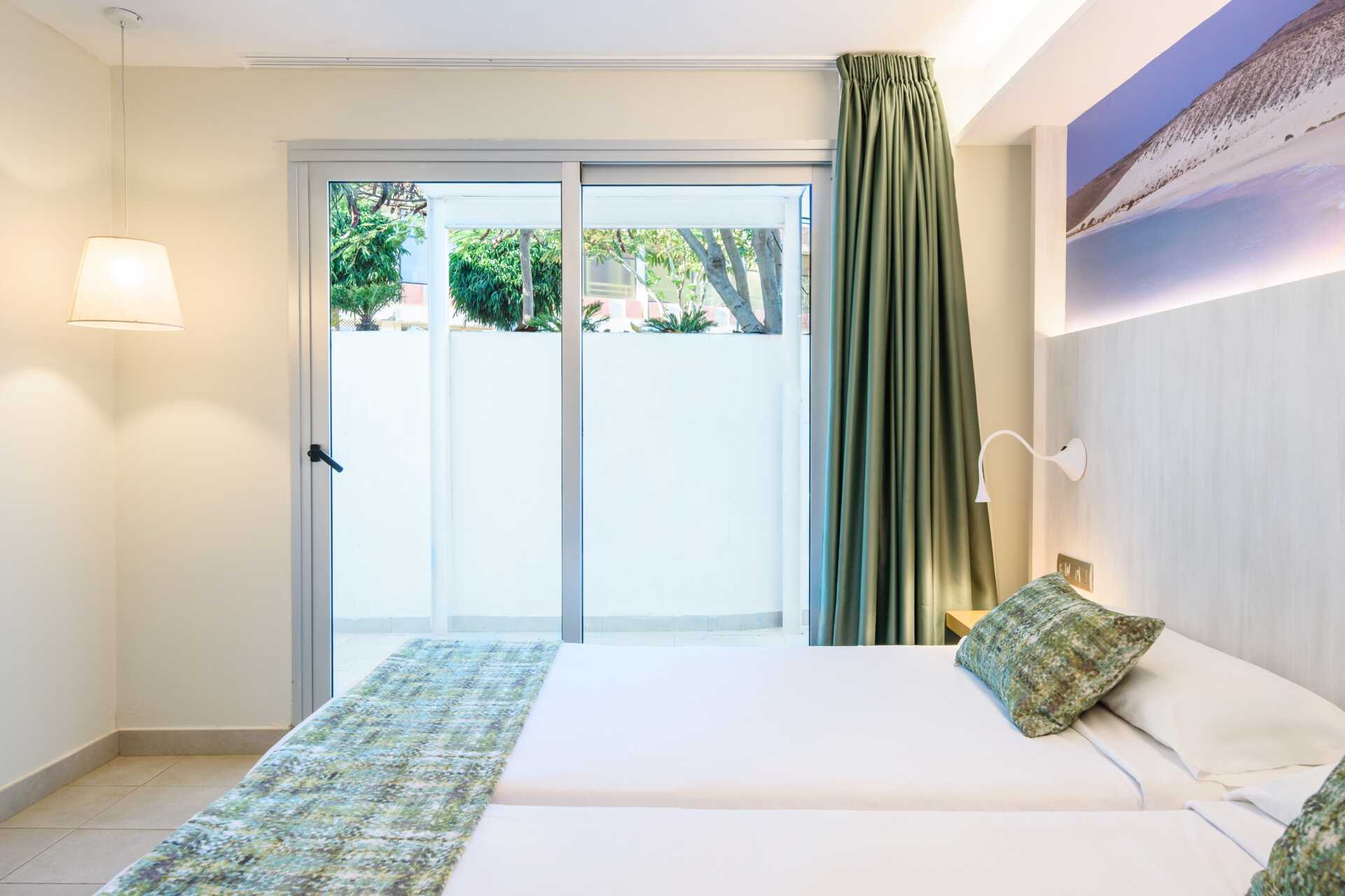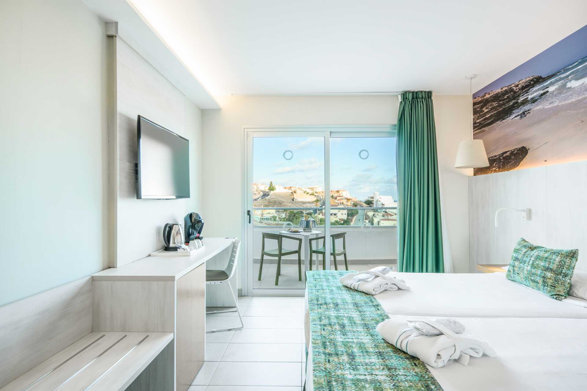Tweepersoonskamer met balkon of terras of zonder patio. Twee eenpersoonsbedden. Mogelijkheid voor extra bed in slaapbank in kamers met balkon of terras. Wifi, airconditioning en kluis inbegrepen. Waterkoker, koffie en thee. Tv met internationale zenders. Föhn. Badkamer met douche en toilet. Schoonmaak 7 keer / week. Er kan een niveauverschil zijn met een opstapje in de kamer.