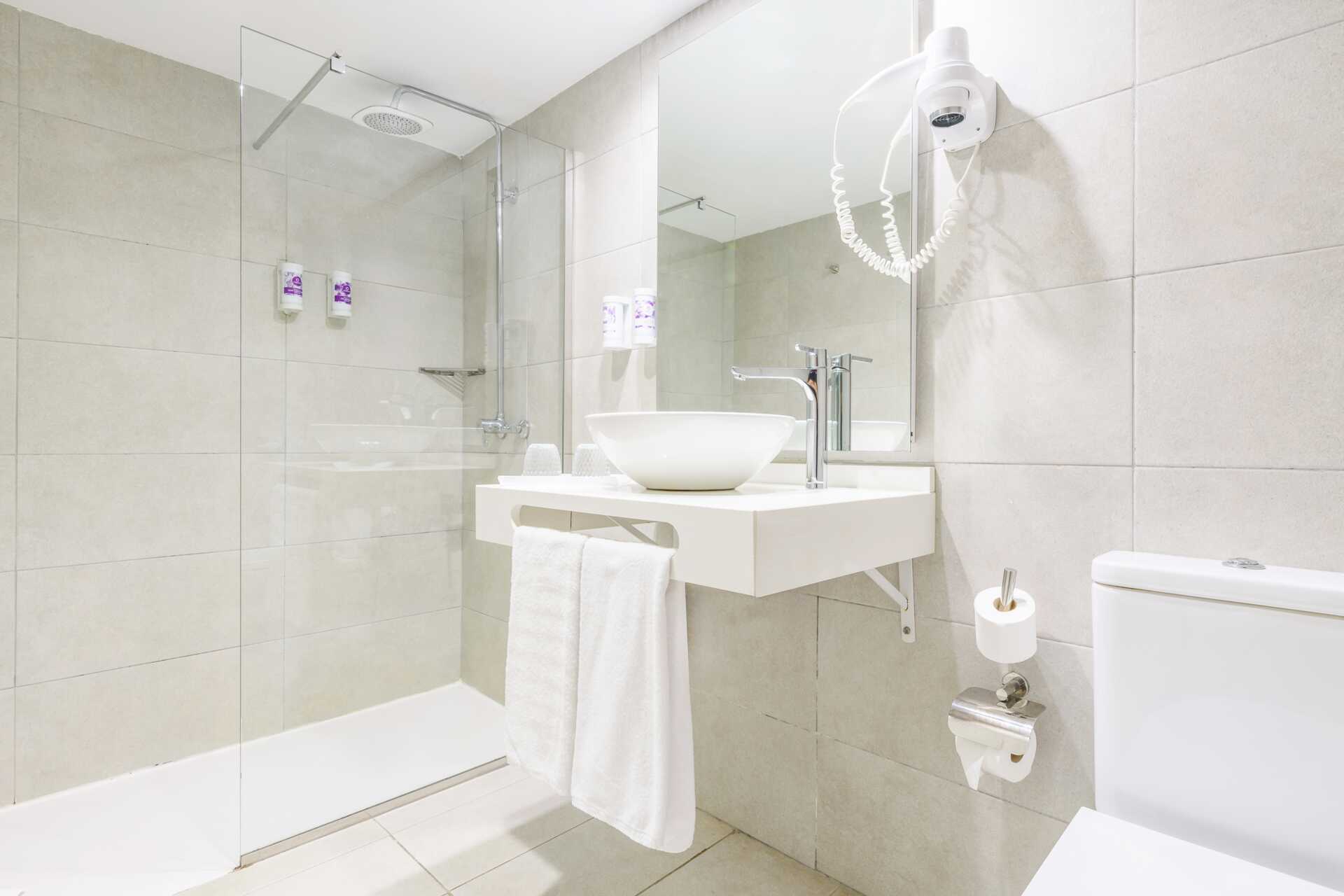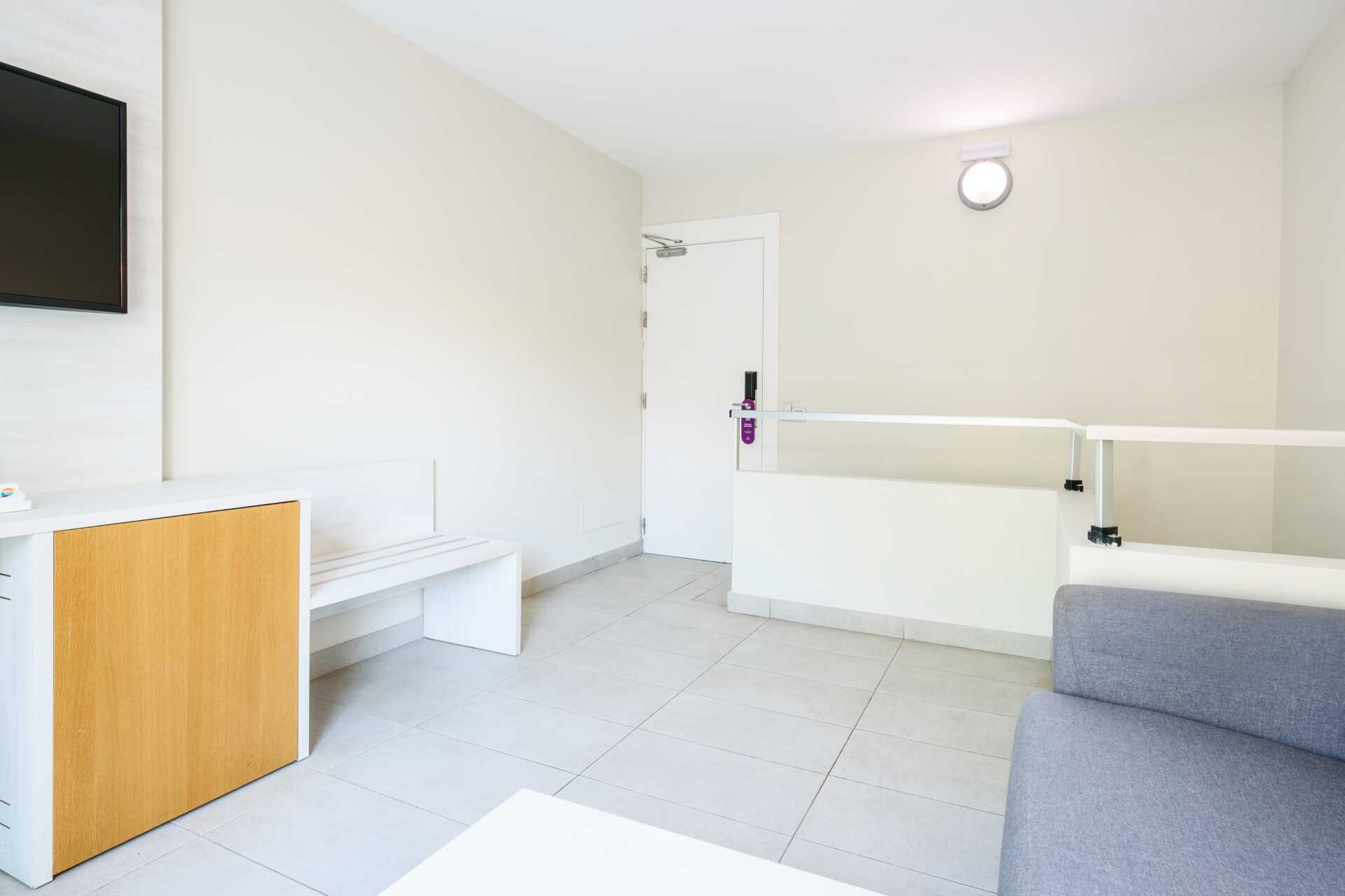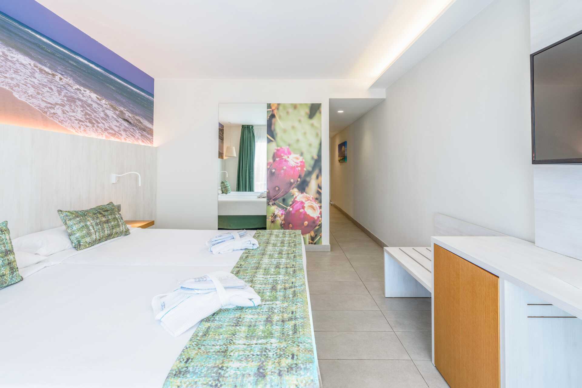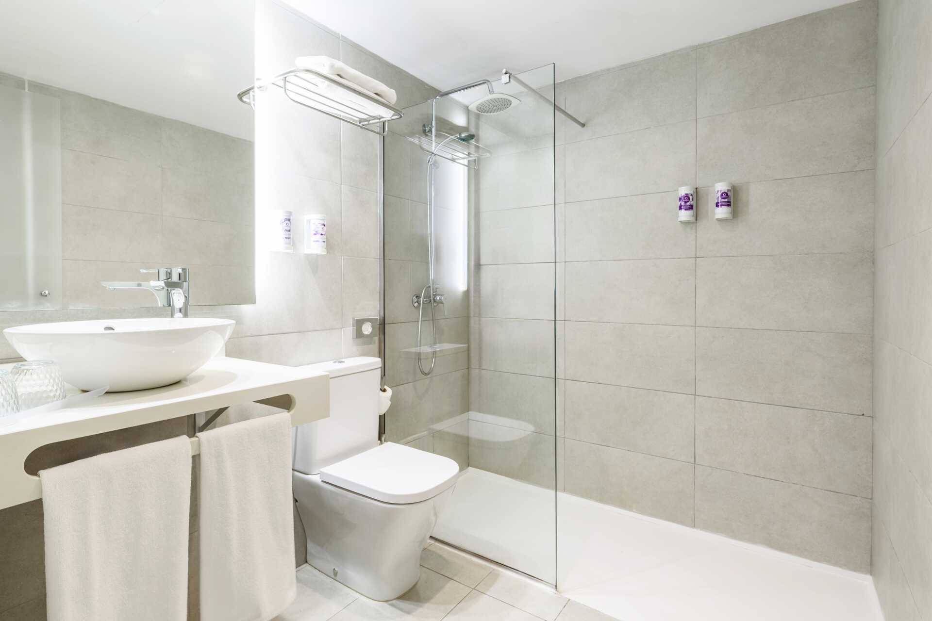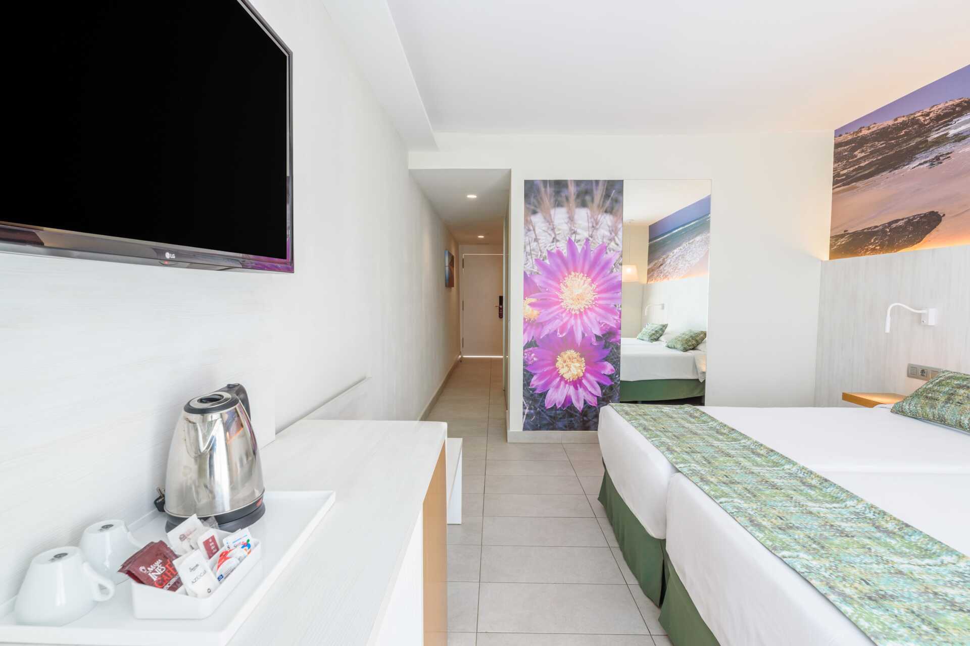 Tweepersoonskamer met balkon of terras of zonder patio. Twee eenpersoonsbedden. Mogelijkheid voor extra bed in slaapbank in kamers met balkon of terras. Wifi, airconditioning en kluis inbegrepen. Waterkoker, koffie en thee. Tv met internationale zenders. Föhn. Badkamer met douche en toilet. Schoonmaak 7 keer / week. Er kan een niveauverschil zijn met een opstapje in de kamer.