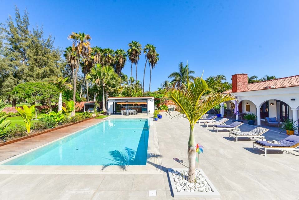 Deze uitzonderlijke villa, gelegen in de serene en pittoreske omgeving van de Maspalomas Golfbaan, biedt de ultieme combinatie van stijl, comfort en gemak. De woning ligt te midden van weelderige groene fairways, op slechts 800 meter van het kantoor van de golfbaan, en biedt daarmee directe toegang tot een van de meest prestigieuze golfbestemmingen van het eiland.