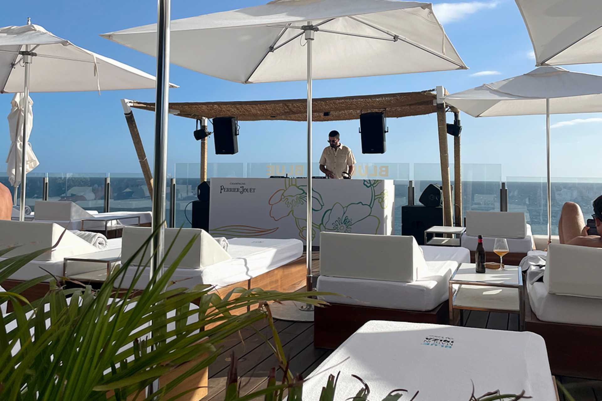 De Blue Marlin Ibiza Sky Lounge bevindt zich op het dak van het hotel. Het kijkt uit over de duinen en de Atlantische Oceaan en beschikt over een zwembadgedeelte met twee overloopzwembaden, comfortabele ligbedden, beroemde dj's die muziek draaien, een sushilounge, een restaurant met eigentijdse gerechten bereid door internationaal bekende chef-koks en een bar waar stijlvolle cocktails worden geserveerd. De Blue Marlin Ibiza Sky Lounge is van maandag tot vrijdag gratis toegankelijk voor hotelgasten, maar op bepaalde evenementendagen en op zaterdag en zondag wordt er entree geheven.