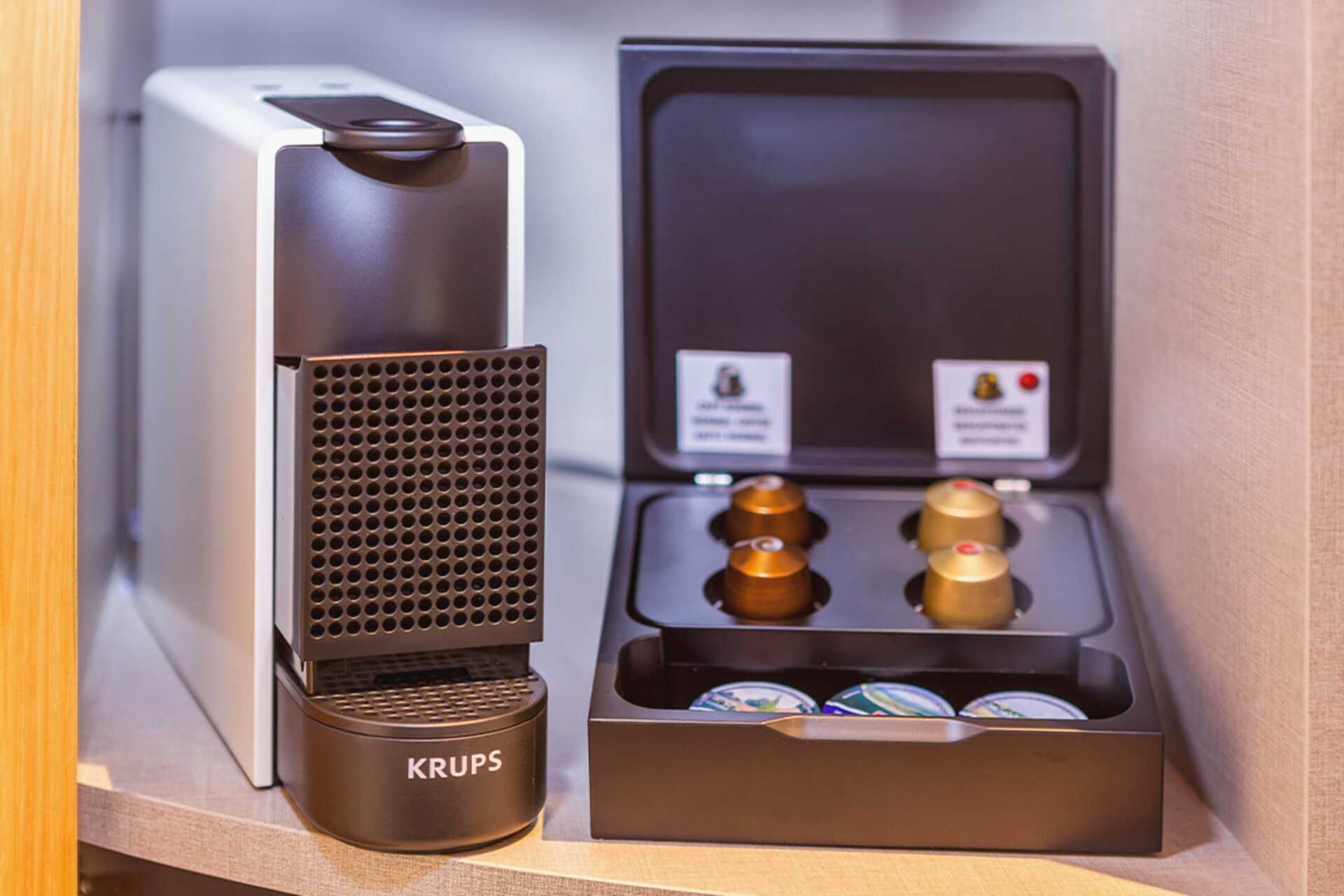 Deluxe kamer met balkon. De deluxe kamers bevinden zich op de verdiepingen 1 tot 3. Een tweepersoonsbed. Wifi, airconditioning en kluis inbegrepen. Minibar. Nespresso-koffiezetapparaat - capsules inbegrepen. Waterkoker. Tv met internationale zenders. Badjassen en slippers. Föhn. Badkamer, deels open naar de kamer, maar met douche en toilet achter matglazen deuren. Schoonmaak 7 keer / week.