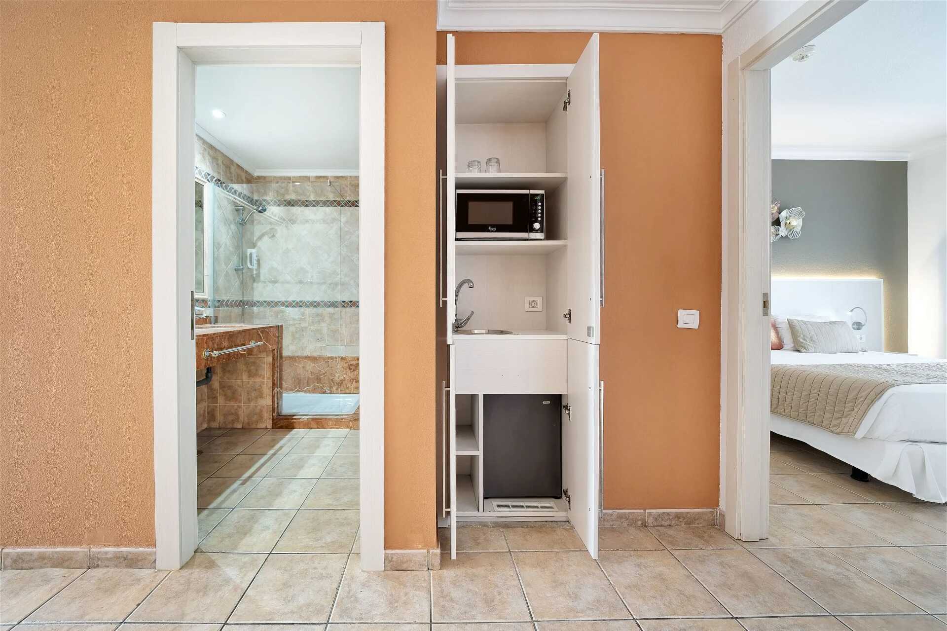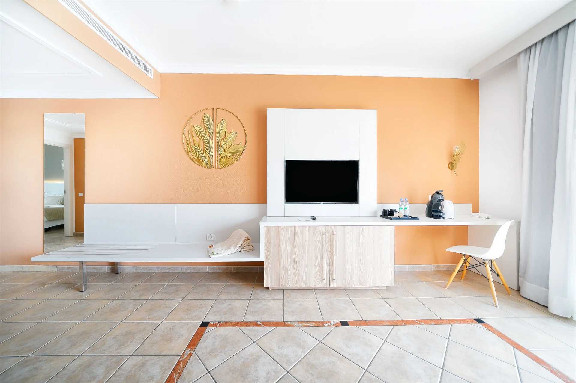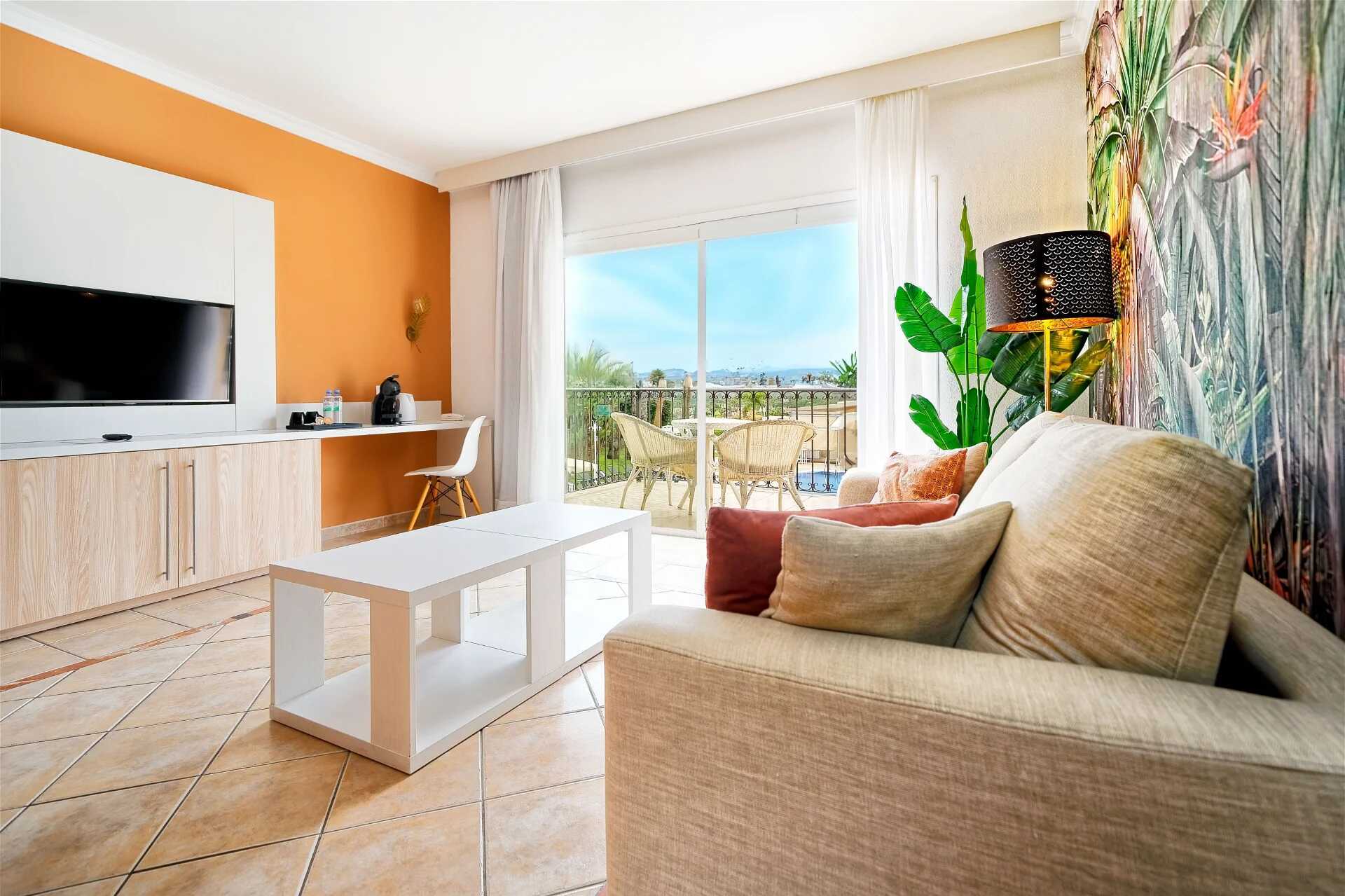 Junior suite met balkon of terras. De junior suite bestaat uit een slaapkamer en een open woonkamer. Een tweepersoonsbed of twee eenpersoonsbedden. Mogelijkheid voor een extra bed in een fauteuilbed. Wifi en airconditioning inbegrepen. Kluis tegen betaling. Koelkast. Waterkoker. Magnetron. Koffiezetapparaat - capsules inbegrepen bij aankomst. TV met internationale zenders. Badjassen op borg. Föhn. Badkamer met bad of douche en toilet. Schoonmaak 5 keer/week.
