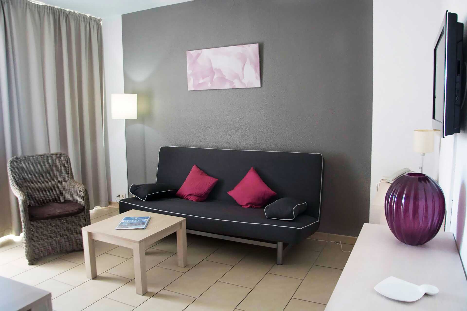 Tweekamerappartement met balkon, of met balkon of terras en zwembadzicht. De appartementen bevinden zich op de eerste tot vierde verdieping. Slaapkamer en gecombineerde woonkamer met kitchenette. Twee eenpersoonsbedden. Mogelijkheid tot een extra bed in de vorm van een slaapbank. Kitchenette met kookplaat, koelkast, koffiezetapparaat, waterkoker, broodrooster en basiskeukengerei. Kluisje en wifi tegen betaling. Tv met internationale zenders. Föhn. Badkamer met bad of douche en toilet. Schoonmaak 4 keer/week. In het winterseizoen worden kinderen onder de twee jaar meegerekend bij het maximale aantal personen in het appartement.