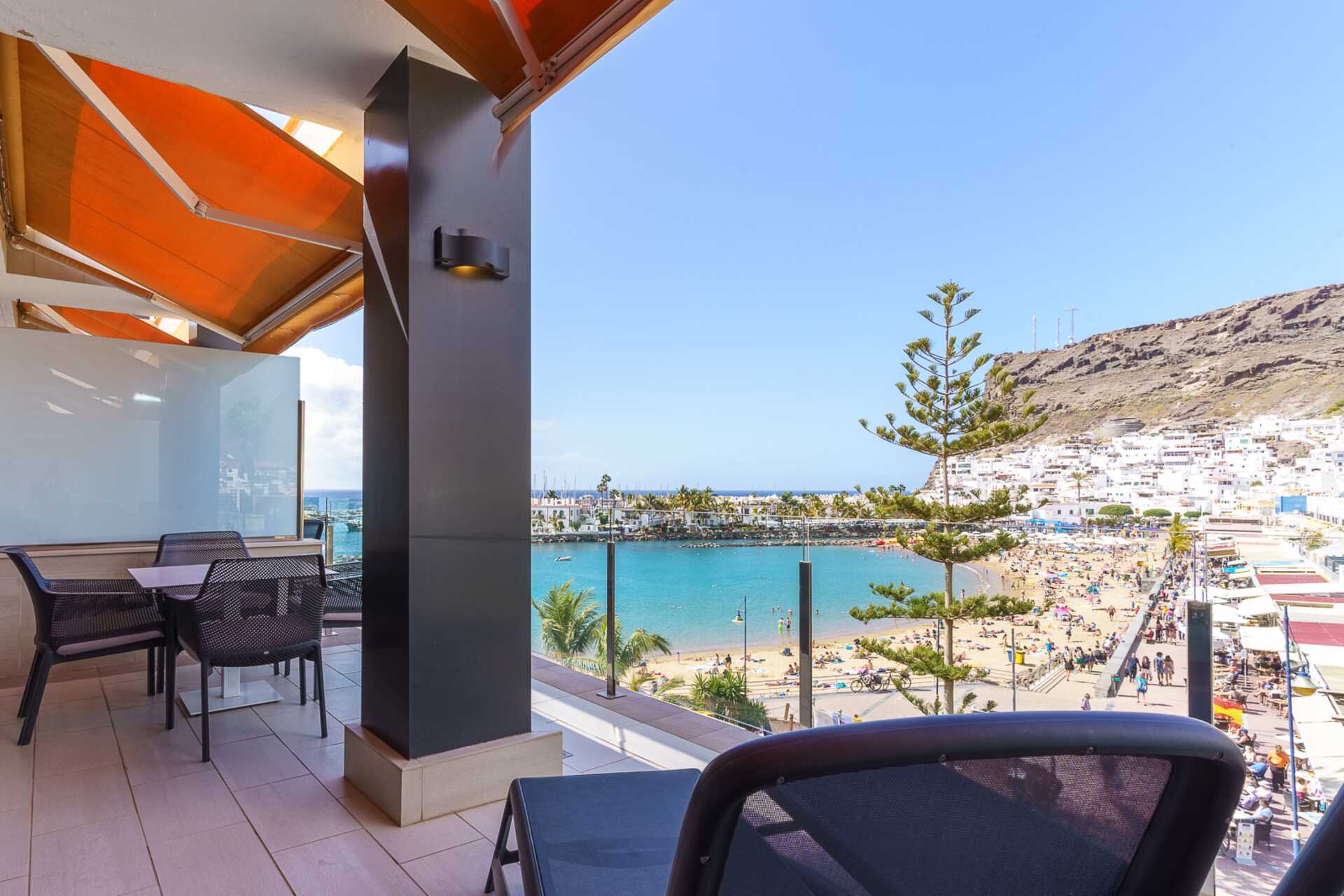 Driekamerappartement met balkon met zeezicht of met beperkt zeezicht. De appartementen hebben verschillende indelingen. Twee slaapkamers, waarvan de ene iets kleiner is dan de andere. Woonkamer gecombineerd met een minikeuken. Een tweepersoonsbed of twee eenpersoonsbedden. Mogelijkheid voor extra bedden in slaapbank. Minikeuken met koelkast, vriezer, kookplaat, oven, broodrooster, koffiezetapparaat, waterkoker, magnetron, vaatwasser en basiskeukengerei. Sommige appartementen hebben een keukentafel en stoelen, andere hebben een bar met kinderstoelen. Tv met internationale zenders in de grote slaapkamer en in de woonkamer. De grote slaapkamer heeft een apart toilet. Wasmachine, wasdroger, strijkijzer en strijkplank. Föhn. Badkamer met douche en toilet. Schoonmaak 5 keer/week.