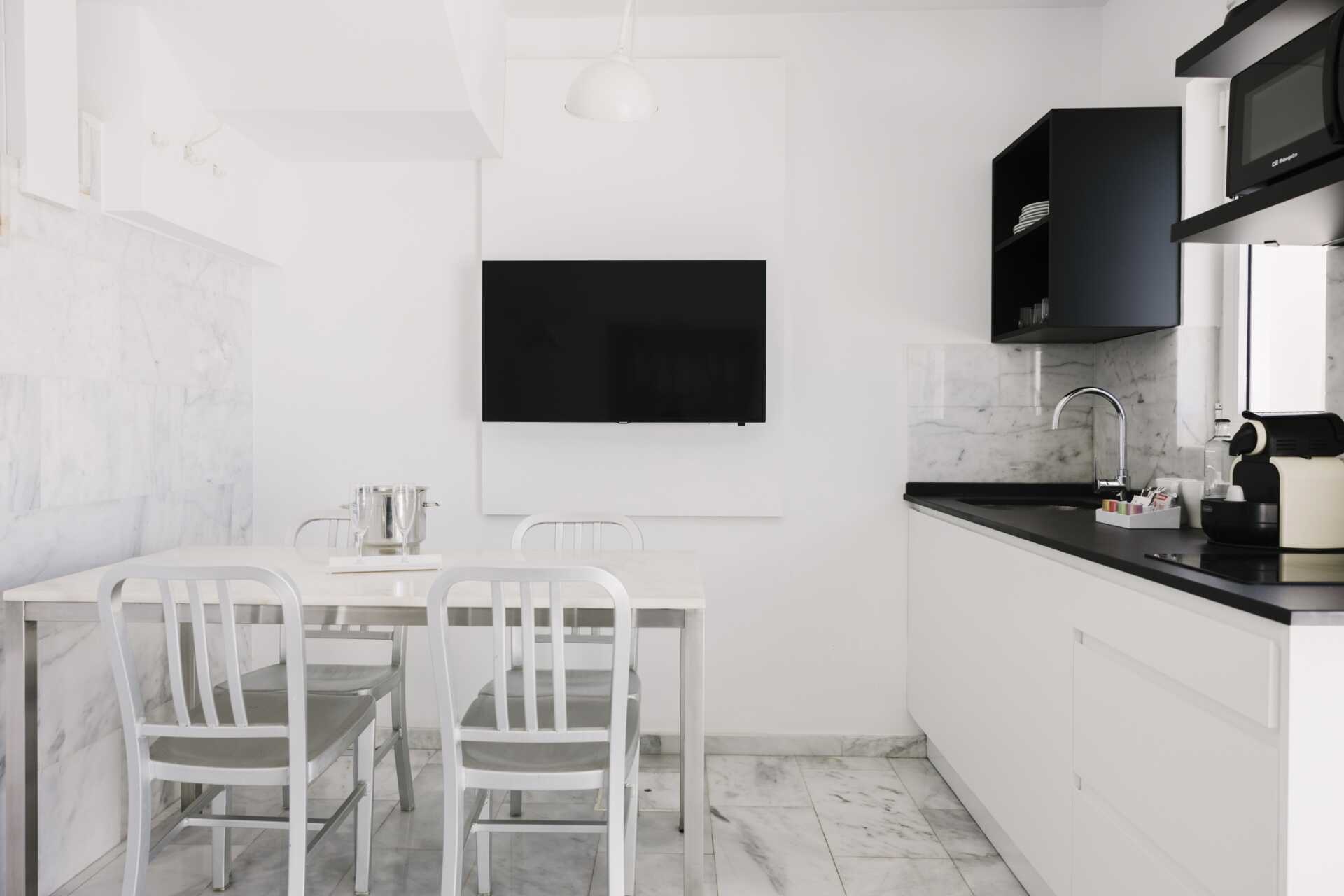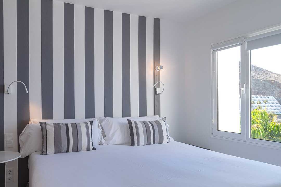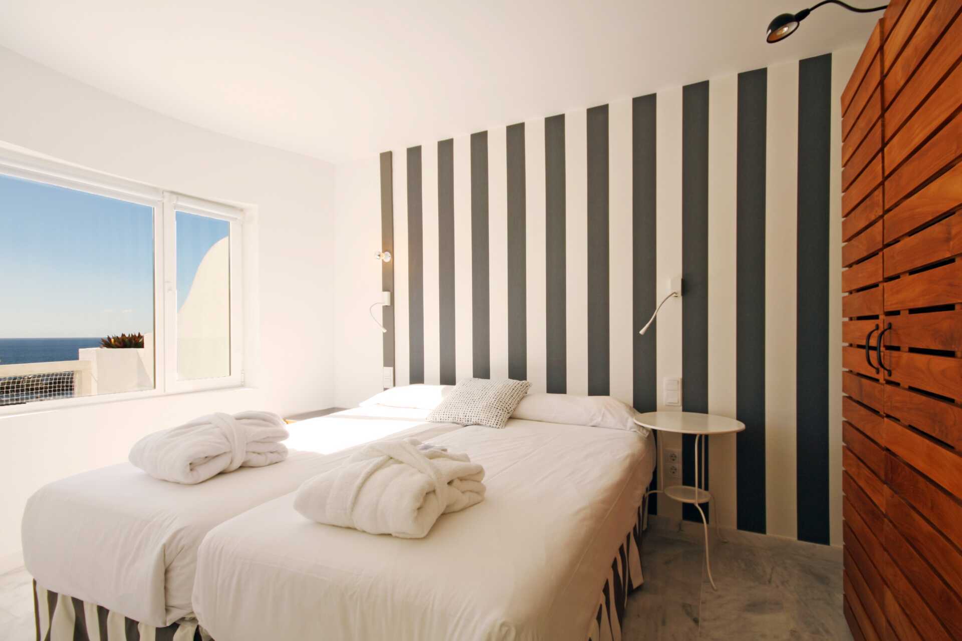 Tweekamerappartement met balkon of terras, deels met beperkt zeezicht. Sommige appartementen hebben meerdere verdiepingen. Slaapkamer en gecombineerde woonkamer met kitchenette. Twee eenpersoonsbedden. Mogelijkheid voor extra bedden in slaapbank. Minikeuken met kookplaten, koelkast met vriesvak, magnetron, koffiezetapparaat, waterkoker, broodrooster en eenvoudige keukenapparatuur. Wifi en airconditioning inbegrepen. Kluis tegen betaling. TV met internationale zenders. Föhn. Badkamer met douche en wc. Schoonmaak 5 keer/week.