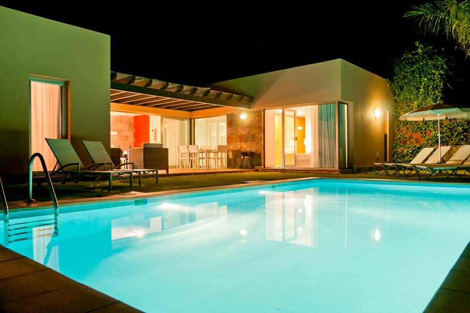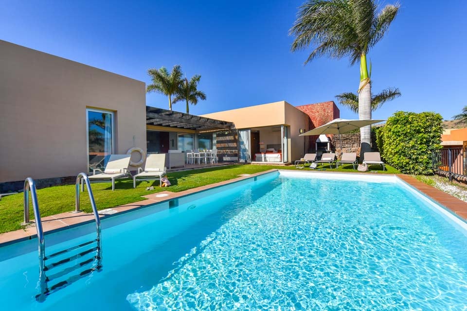 De Par 4-villa's vormen een fraaie collectie privéwoningen, ideaal gelegen binnen het prestigieuze Salobre Golf Resort. Ze bieden een comfortabele woonruimte op één verdieping met stijlvolle, moderne meubels. Elke villa heeft zijn eigen unieke karakter en charme, met een kleurrijke en indrukwekkende inrichting, en ze beschikken allemaal over een heerlijk uitnodigend terras waar u 's avonds kunt genieten van de Canarische zon. Elke villa is zeer goed uitgerust, met airconditioning, flatscreen-tv, dvd-speler en een complete keukenuitrusting om ervoor te zorgen dat uw zelfverzorgende vakantie zo stressvrij mogelijk verloopt. U kunt bovendien op uw gemak genieten van uw eigen privézwembad! Nog een fantastisch pluspunt van de Salobre Golf Villas is de dagelijkse, gratis bezorgservice van vers brood! Voor wie deze rustige oase wil verlaten, ligt de nabijgelegen populaire badplaats Maspalomas op korte rijafstand.