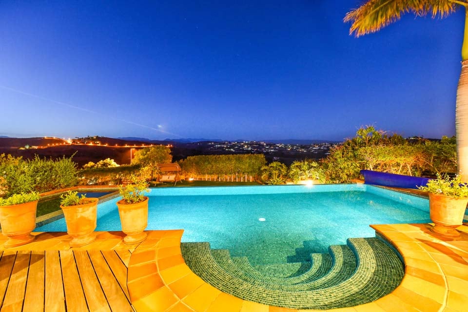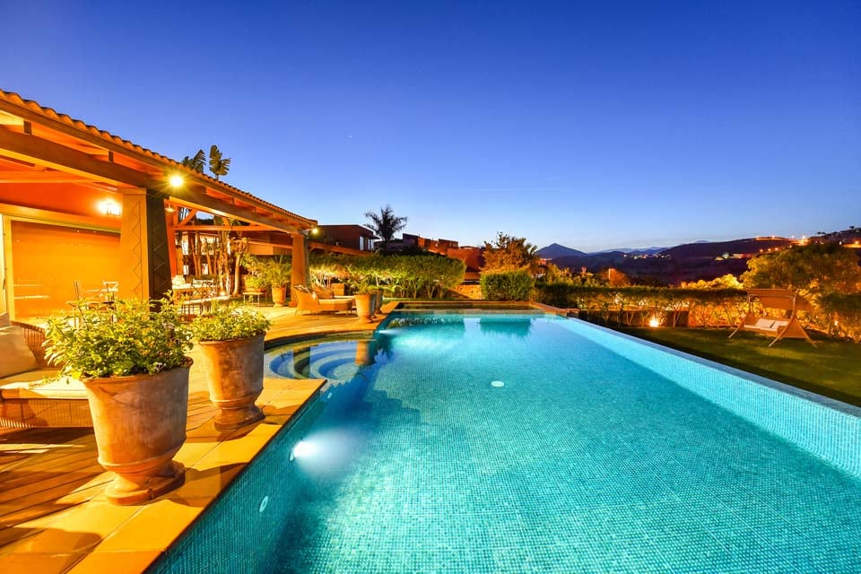 Het terras is zonder twijfel het beste onderdeel! Je moet het echt zien om het te geloven: geniet van het adembenemende uitzicht over de altijd groene golfbaan en de rustieke heuvels. Het bovenste terras biedt een fantastische plek om van dit uitzicht te genieten met een cocktail of twee. De luxe inrichting houdt daar niet op, want u kunt heerlijk wegzakken in een van de comfortabele ligstoelen met een goed boek. Zwem naar de rand van het overloopzwembad en geniet van de omgeving terwijl de zon schijnt. U kunt ook een ontspannend bad nemen in de jacuzzi, die bij de prijs van uw verblijf is inbegrepen. 's Avonds prachtig verlicht, is het buitenterrein de ideale plek om met vrienden en familie samen te komen en te genieten van een paar glazen wijn.