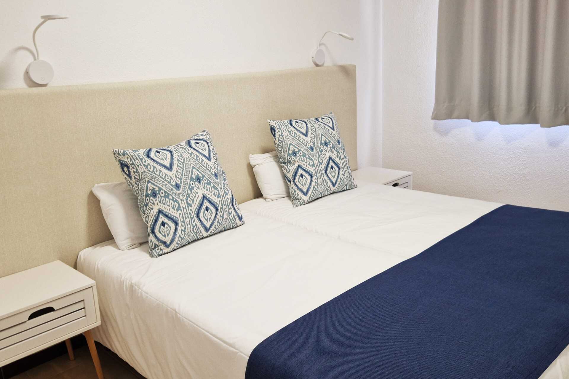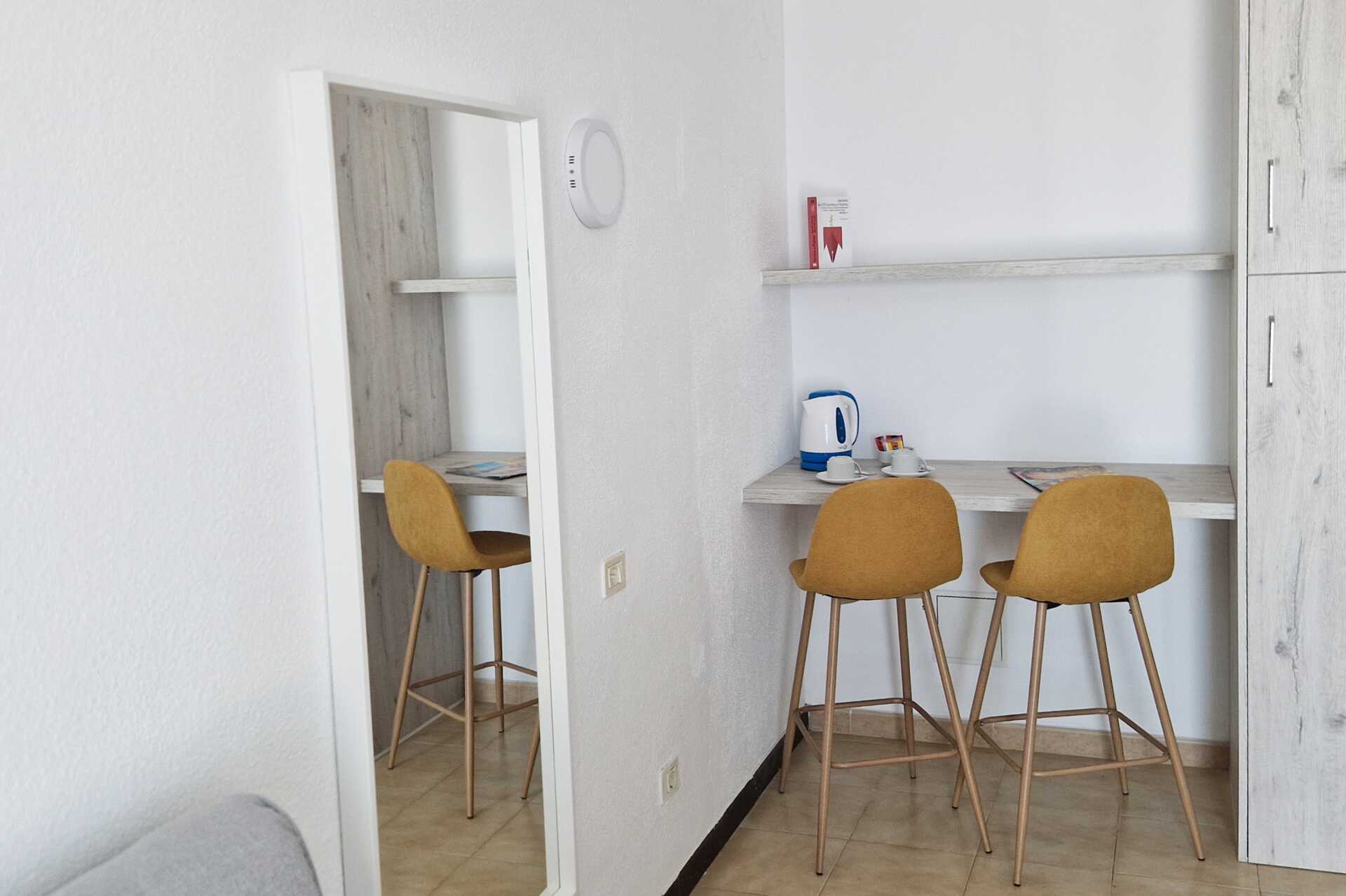 Junior suite met balkon en zeezicht. De junior suite bestaat uit een slaapkamer en een woonkamer en bevindt zich op de verdiepingen 2, 3, 4 en 5. Twee eenpersoonsbedden. Mogelijkheid voor een extra bed in de vorm van een slaapbank. Wifi inbegrepen. Kluisje tegen betaling. Plafondventilator. Koelkast. Waterkoker, koffie en thee. Tv met internationale zenders. Föhn. Badkamer met douche en toilet. Schoonmaak 5 keer/week.