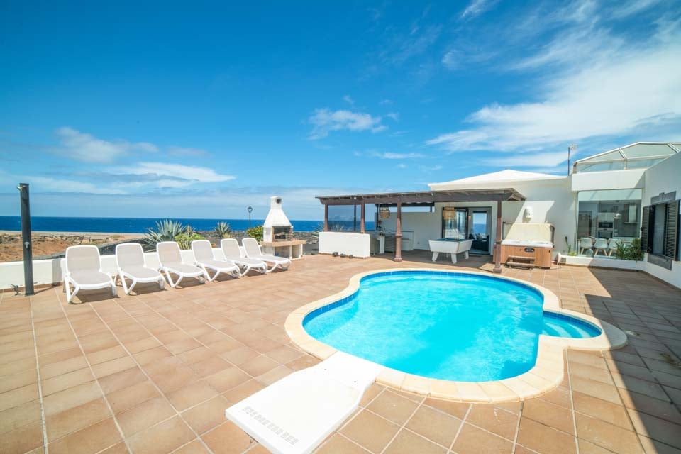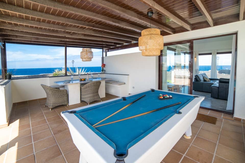 Speciaal voor het prachtige klimaat van de Canarische Eilanden is het buitenterras met uitzicht op de azuurblauwe zee ontworpen. U zult nooit uitgekeken raken op dit terras. Het verleidelijke zwembad is een heerlijke afwisseling van de hitte en is perfect voor een verfrissende middagduik. Het zwembad is voorzien van ligstoelen, waar u heerlijk kunt zonnen terwijl u uitkijkt over het glinsterende uitzicht. Dineren bij Casa Playa is iets bijzonders. Er is een eetgedeelte in de openlucht waar u bij zonsondergang van een maaltijd kunt genieten. Er is zelfs een barbecue aanwezig als u zin hebt om heerlijke lokale lekkernijen te grillen. En net als u denkt dat de buitenruimte niet beter kan worden, staat er een pooltafel en een bubbelbad klaar om u te laten verwennen.