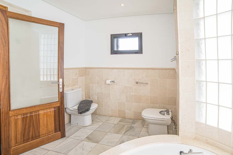 Whirlpoolbad, wastafel, toilet, bidet