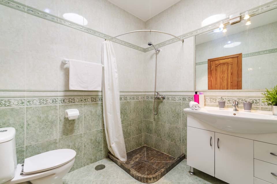 Om de villa te bereiken is er een pad van 250 cm breed, zonder trappen. De voordeur heeft een breedte van 80 cm. De deuren naar het zwembadterras zijn 98 cm breed, met een kleine opstaande rand boven het deurkozijn. Het pad naar het zwembad is 67 cm breed en bestaat uit 5 treden. Het zwembad zelf is via een trap te bereiken. Dit betreft een woning op de begane grond. Alle slaapkamerdeuren zijn 70 cm breed, terwijl alle badkamerdeuren 60 cm breed zijn. De deur naar de keuken/eetkamer/woonkamer is 70 cm breed. *Houd er rekening mee dat hoewel wij er alles aan doen om de verstrekte informatie juist te maken, er fouten kunnen optreden. Mocht u meer specifieke informatie over de villa nodig hebben, neem dan gerust contact met ons op.