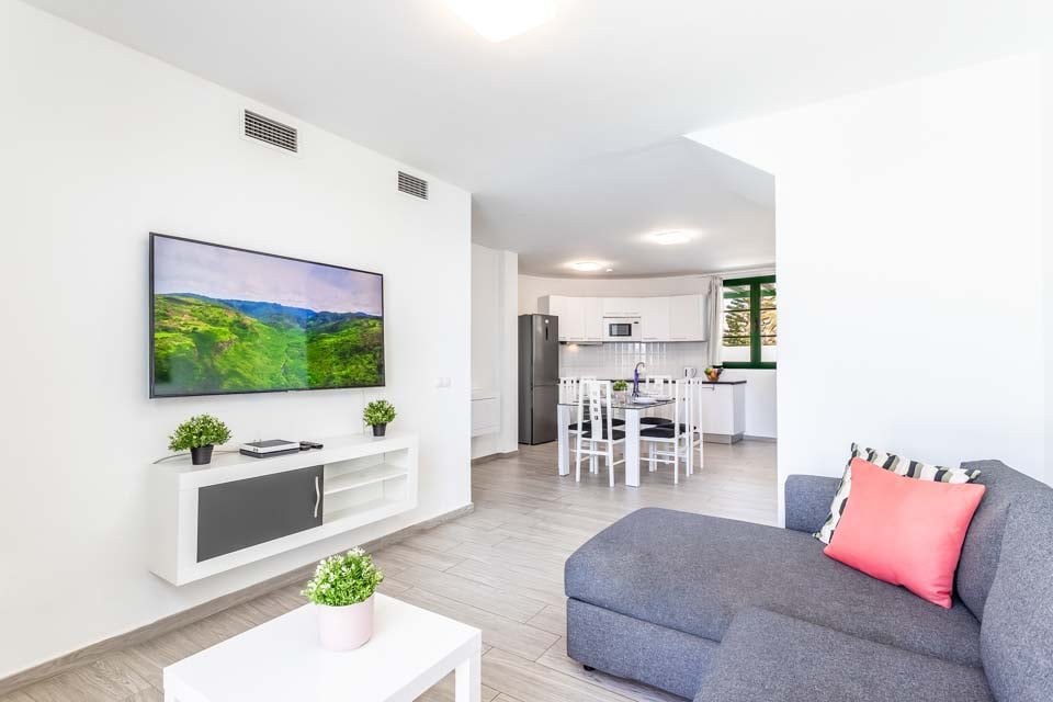Airconditioning, comfortabele zitplaatsen, eetgelegenheid, deuren naar terrastuinen, smart-tv