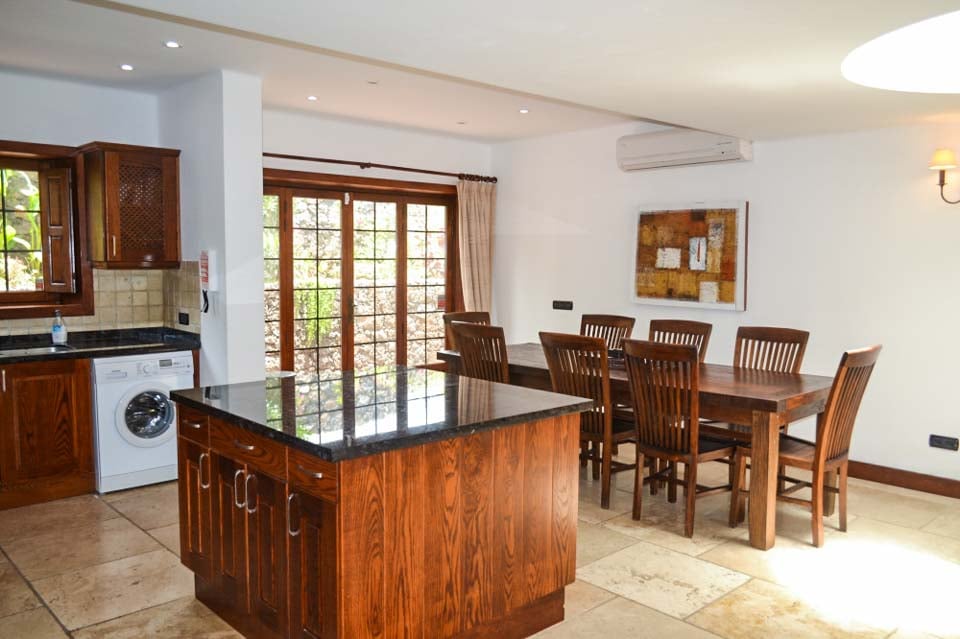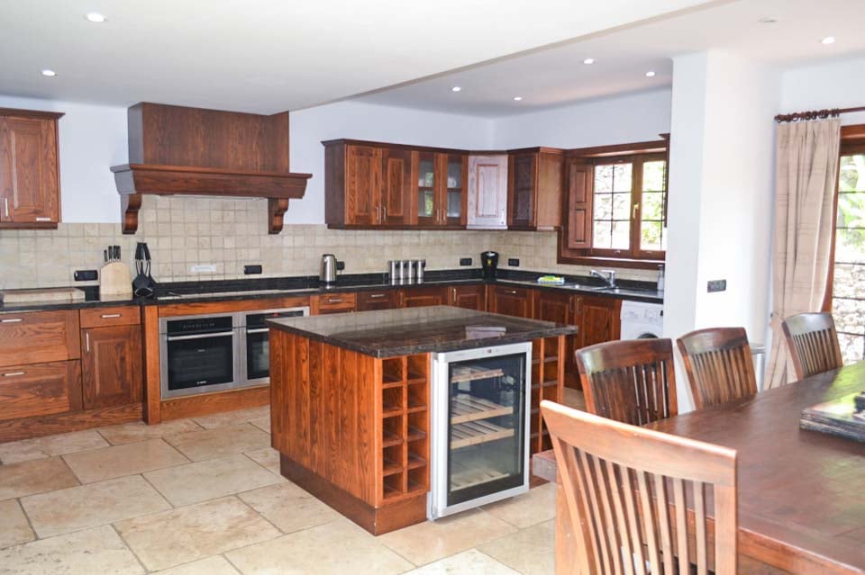 In deze ruime woning vindt u een royale, volledig uitgeruste keuken. Het kookeiland speelt absoluut een centrale rol, met een moderne wijnkoeler om uw wijn koel te houden op warme dagen. Als u verder door het terrein loopt, komt u in de woonkamer, voorzien van comfortabele banken, airconditioning en openslaande deuren naar het terras. Er zijn ook vijf slaapkamers, waarvan er twee een super kingsize hemelbed, smart-tv's en openslaande deuren naar het terras hebben. Ze beschikken beide over een eigen badkamer met bubbelbad en dubbele wastafels. Eén van deze kamers wil je beslist bemachtigen! De overige drie slaapkamers zijn allemaal tweepersoonskamers, waarvan één met een eigen badkamer, terwijl de overige twee een aparte badkamer delen. Alle slaapkamers zijn voorzien van gratis airconditioning voor de warme nachten.