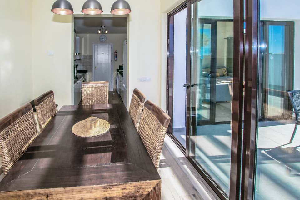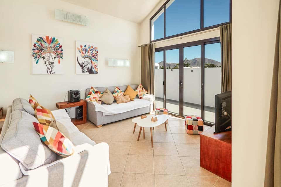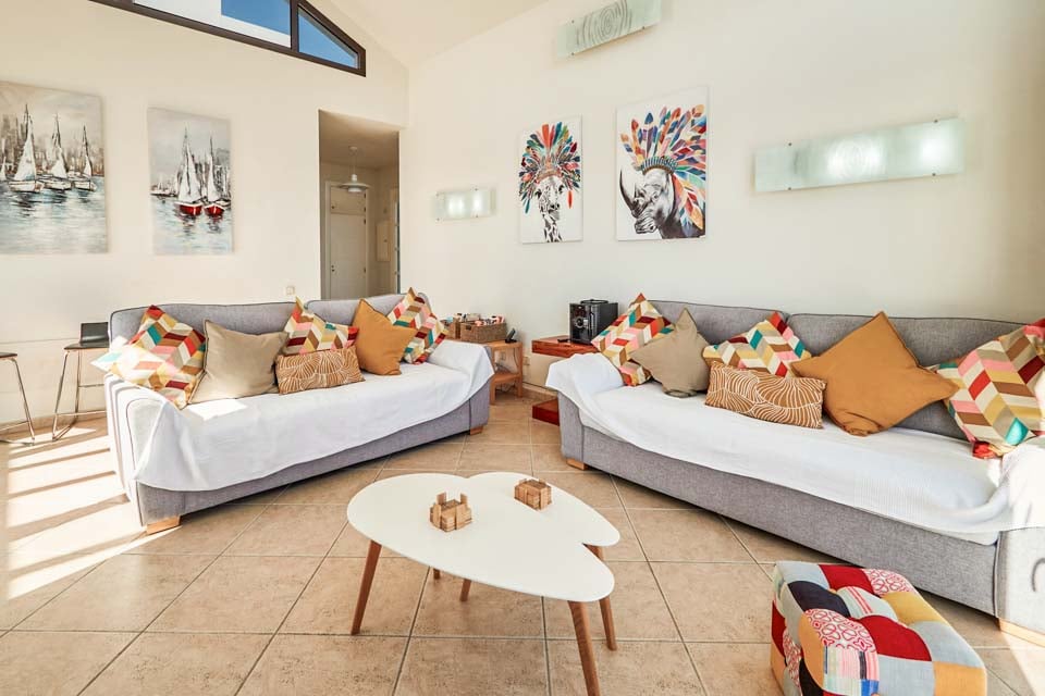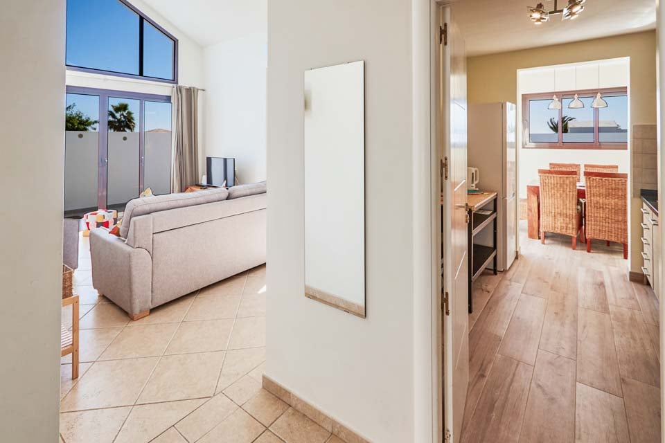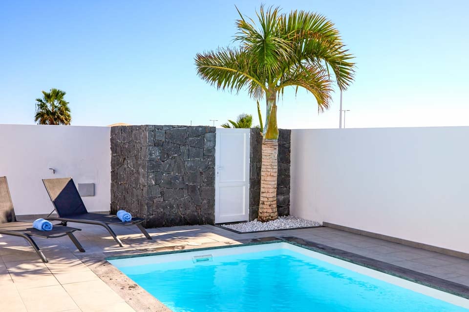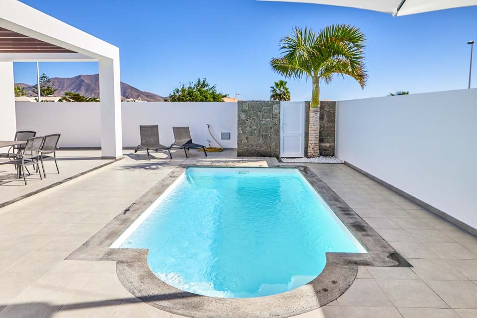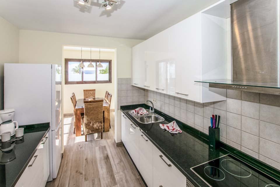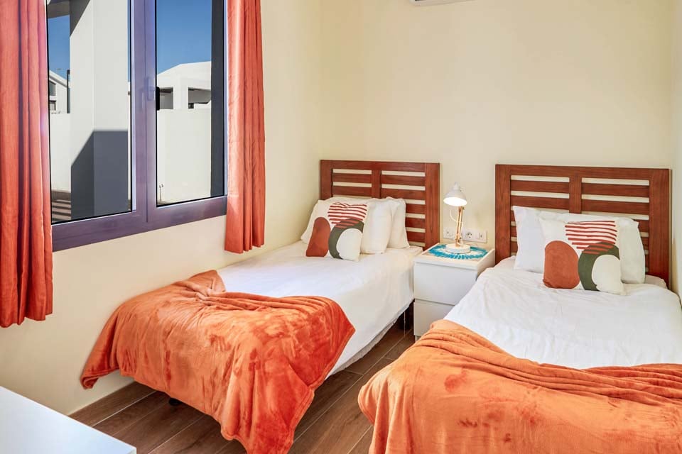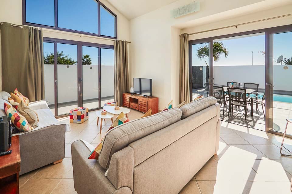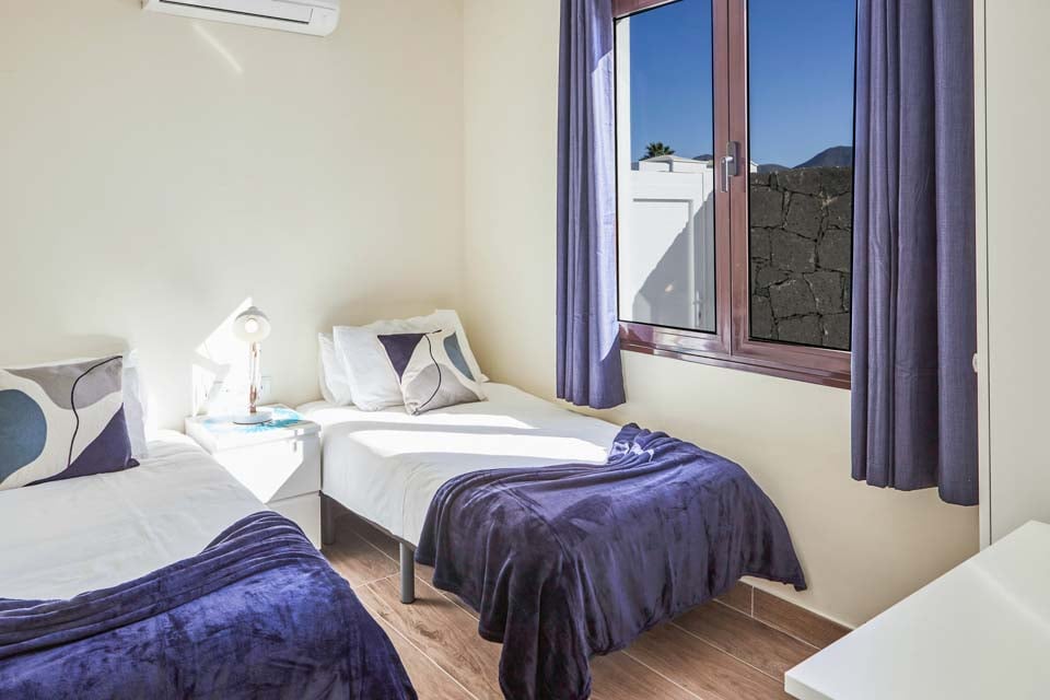 Binnenin biedt Villa Buganvilla vier ruime slaapkamers, allemaal minimalistisch ingericht met koele airconditioning en beige vloertegels. De hoofdslaapkamer beschikt over een eigen badkamer en openslaande deuren naar het terras bij het zwembad. De comfortabele woonkamer heeft hoge plafonds en openslaande deuren die van de vloer tot het plafond reiken, waardoor er veel natuurlijk licht de kamer binnenstroomt. Er is ook een smart-tv aanwezig, voor gezellige filmavonden met het hele gezin. Als alternatief kunt u voor een avondje uit naar het centrum van Playa Blanca, dat op slechts 25 minuten loopafstand ligt. Daar vindt u een scala aan bars, cafés en restaurants die heerlijke tapasmenu's, versgemaakte cocktails en lokale bieren serveren.