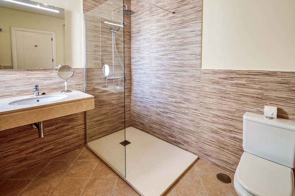 Om de villa te bereiken is er een pad van 272 cm breed met 1 trede. De voordeur heeft een breedte van 94 cm, terwijl de deur naar het terras 144 cm breed is. Het terras is open, vlak en betegeld. Er is slechts een kleine trede vanaf de pergola naar het zwembad. Het zwembad zelf is via een trap te bereiken. Dit betreft een woning op de begane grond. De deur van de hoofdslaapkamer is 70 cm breed, terwijl de deur van de gemeenschappelijke badkamer ook 70 cm breed is. De deur naar de keuken/eetkamer is 70 cm breed en de deur naar de woonkamer is ook 70 cm breed. *Houd er rekening mee dat de verstrekte informatie zo nauwkeurig mogelijk moet zijn, maar dat er toch fouten kunnen optreden. Mocht u meer specifieke informatie over de villa nodig hebben, neem dan gerust contact met ons op.