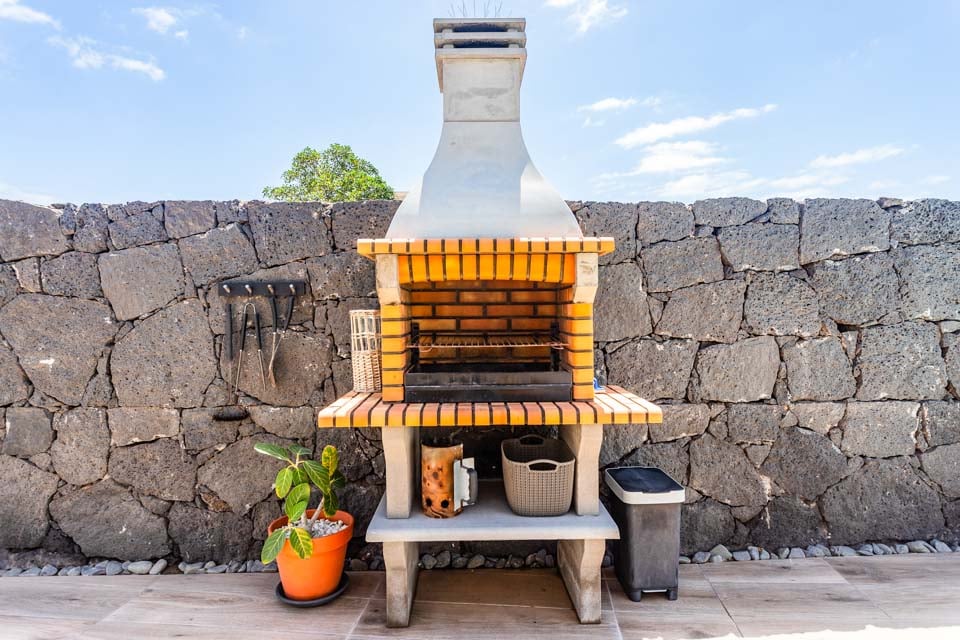 Overdekt terras, dineren in de openlucht, faciliteiten voor dineren in de openlucht, eetfaciliteiten, barbecue, barbecue van baksteen, ligstoelen, pooltafel, tafeltennis