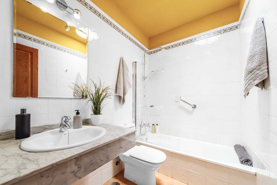 Bad met douche, toilet, wastafel
