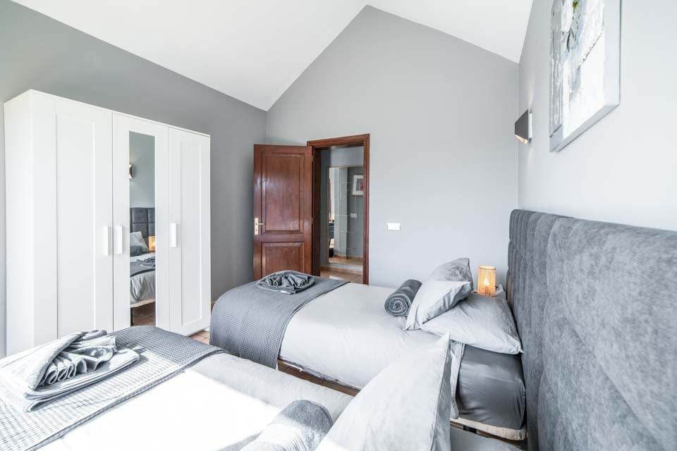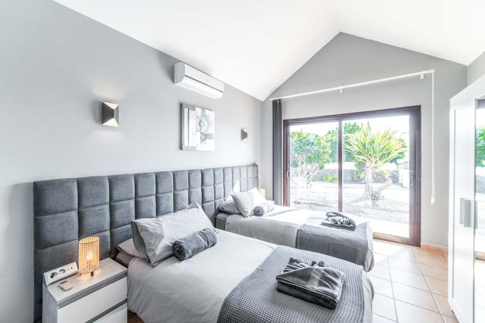 Twee eenpersoonsbedden, airconditioning, deuren naar terras
