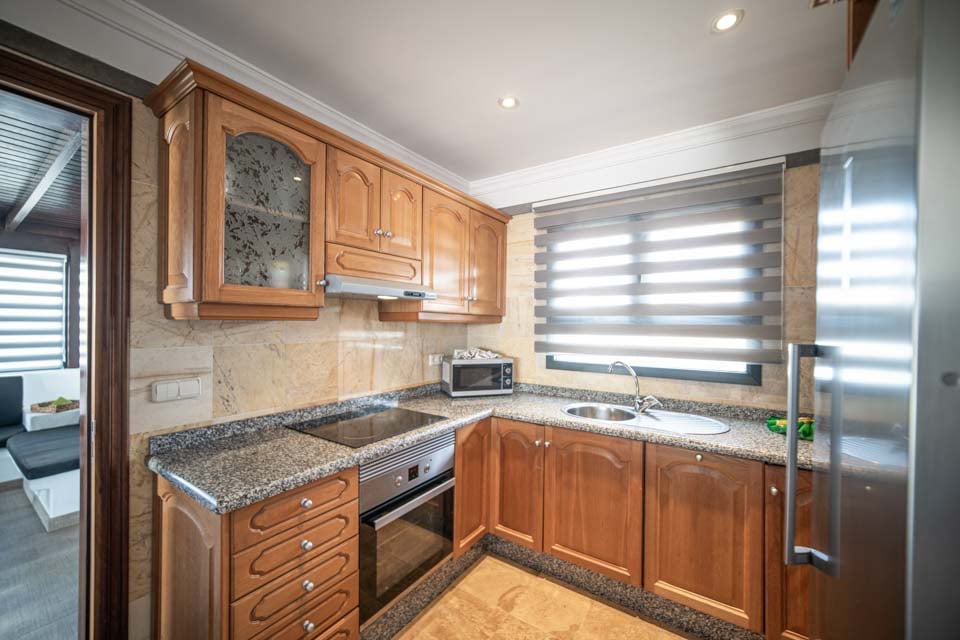 Voor leuke dagen in de villa is het terras uitgerust met een pooltafel om u te vermaken en een verwarmd privézwembad* waar u met de kinderen in kunt spetteren. Voor ontspanning is het zwembad uitgerust met ligstoelen. Hier kunt u heerlijk van de laatste zonnestralen genieten voordat u gaat dineren. Op de begane grond bevinden zich de meeste kamers, van de volledig uitgeruste keuken tot de slaapkamers met twee eenpersoonsbedden. De gehele eerste verdieping is gereserveerd voor de hoofdslaapkamer, die is voorzien van een super kingsize bed, balkonterras en badkamer ensuite.
