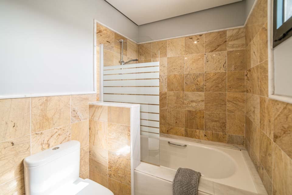 Bad met douche, toilet, wastafel