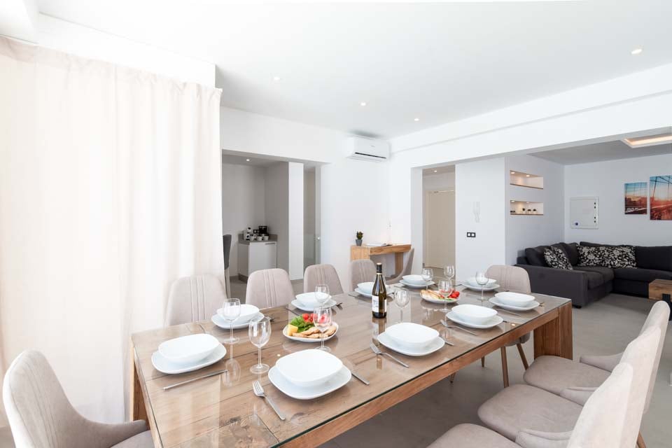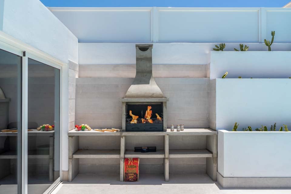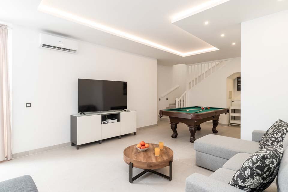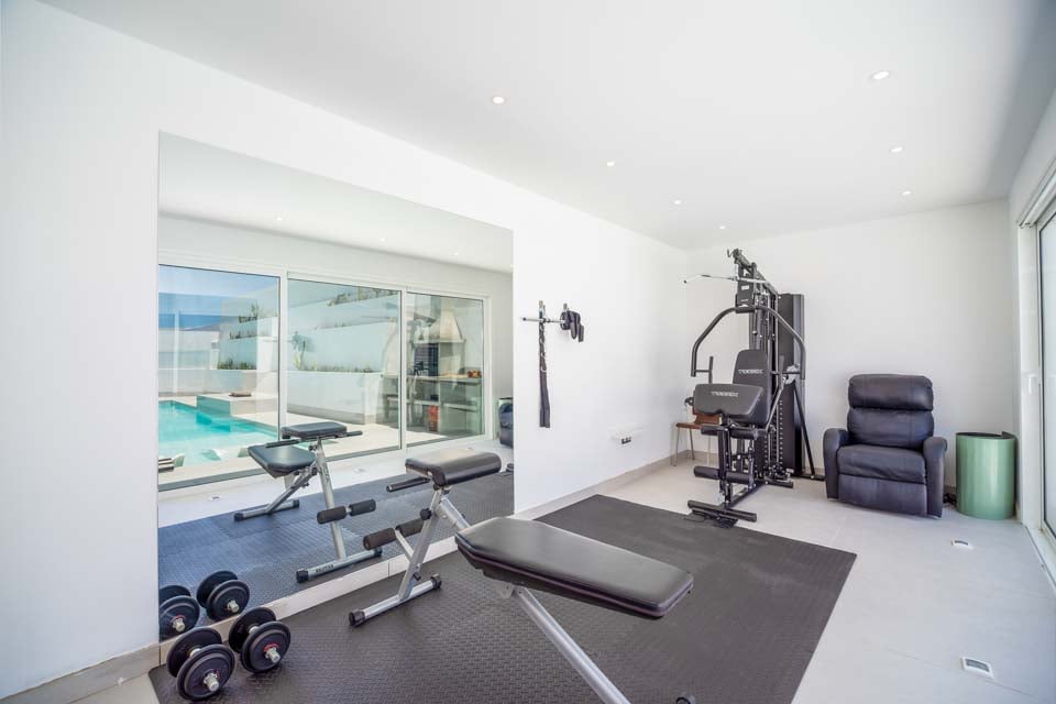 De villa beschikt over vijf ruime slaapkamers, waaronder een moderne master suite met een open badkamer die naadloos overgaat in de kamer, wat een gevoel van ruimte en ontspanning creëert. Er is airconditioning in het hele pand, zodat u in elk seizoen van comfort kunt genieten.