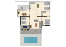 Om de villa te bereiken is er een pad van 110 cm. De voordeur heeft een breedte van 168 cm, terwijl de deur naar het terras 70 cm breed is. Het terras is open en bestaat, zoals u op de foto's kunt zien, uit verschillende oppervlakten. De ondergrond is vlak en bestaat uit tegels en kunstgras. Het pad naar het zwembad loopt vanaf de poort lichtjes hellend. Het zwembad zelf is toegankelijk via een ladder. Dit betreft een woning op de begane grond. Alle slaapkamers hebben een deurbreedte van 70 cm, terwijl de deurbreedte van de familiebadkamer 60 cm is. De deur naar de keuken/eetkamer is 70 cm breed en de deur naar de woonkamer is 115 cm breed. *Houd er rekening mee dat hoewel wij er alles aan doen om de verstrekte informatie juist te maken, er fouten kunnen optreden. Mocht u meer specifieke informatie over de villa nodig hebben, neem dan gerust contact met ons op.