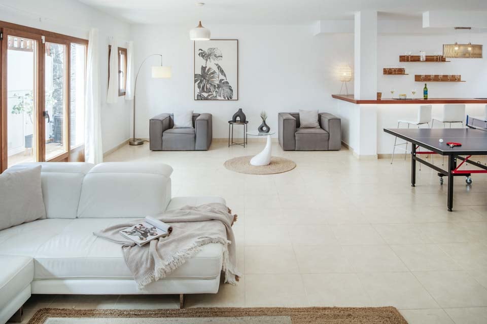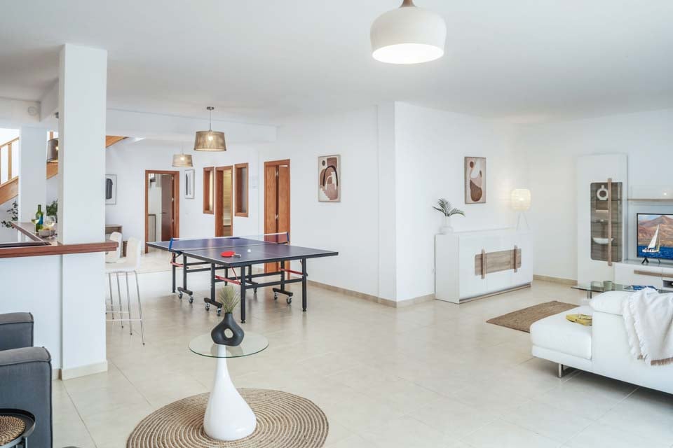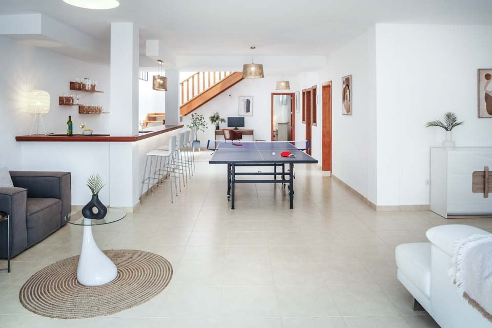 Comfortabele zithoek, smart-tv, bureau, bar, tafeltennis, deuren naar terras
