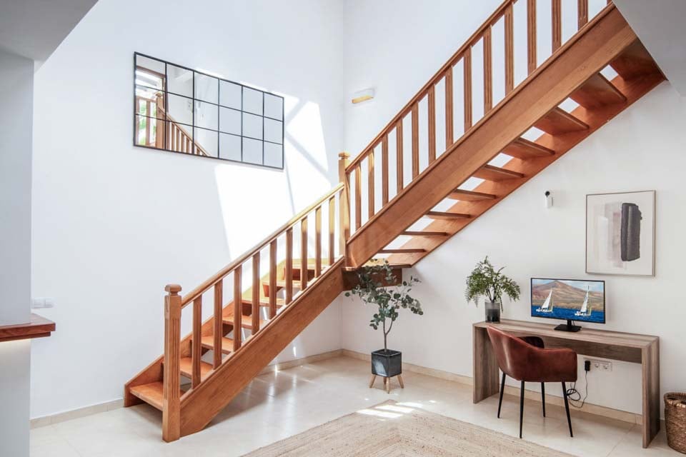 Houd er rekening mee dat deze villa in een heuvelachtig gebied van Playa Blanca ligt. Vanaf het centrum van het resort naar de villa is de weg op sommige plaatsen bergopwaarts en steil. De villa ligt aan de voet van Montana Roja. Om de villa te bereiken is er een pad van 100 cm breed met 16 treden vanaf de parkeerplaats. De voordeur heeft een breedte van 85 cm, terwijl de deur naar het terras 130 cm breed is. Zoals u op de foto's kunt zien, bevindt het terras zich op een split-level. Er zijn in totaal 12 treden van het eetgedeelte naar het zwembad. De slaapkamers en badkamers op de begane grond hebben een deurbreedte van 70 cm. De deur naar de keuken/eetkamer is 70 cm breed. De lounge bevindt zich op de benedenverdieping. *Houd er rekening mee dat de verstrekte informatie zo nauwkeurig mogelijk moet zijn, maar dat er toch fouten kunnen optreden. Mocht u meer specifieke informatie over de villa nodig hebben, neem dan gerust contact met ons op.