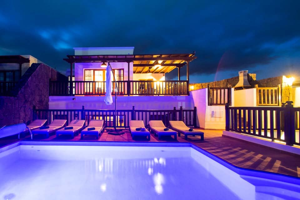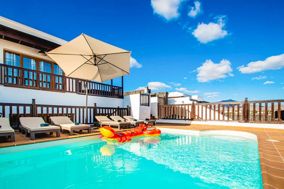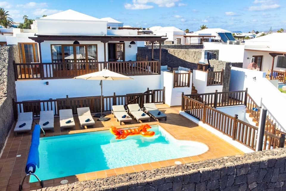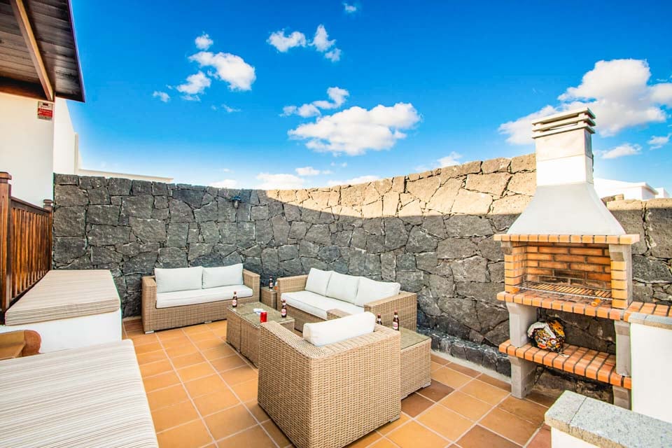 Vista Rey ligt op een toplocatie in Playa Blanca en mag u niet missen. Deze villa met zes slaapkamers ligt tussen de aangrenzende villa's en is ideaal voor grotere groepen. Op het ruime terras vindt u volop plekjes om te zonnebaden, ontspannende zitjes en de mogelijkheid om buiten te eten. Voor de beginnende chef-koks onder ons is er een stenen barbecue met een bassin, ideaal om culinaire hoogstandjes te bereiden voor vrienden en familie. Het terras is verdeeld over meerdere niveaus, waarbij het elegante zwembad met Romeinse treden centraal op het lagere terras ligt. Omzoomd met zachte ligstoelen, is dit de ideale plek om in stijl van de zon te genieten.