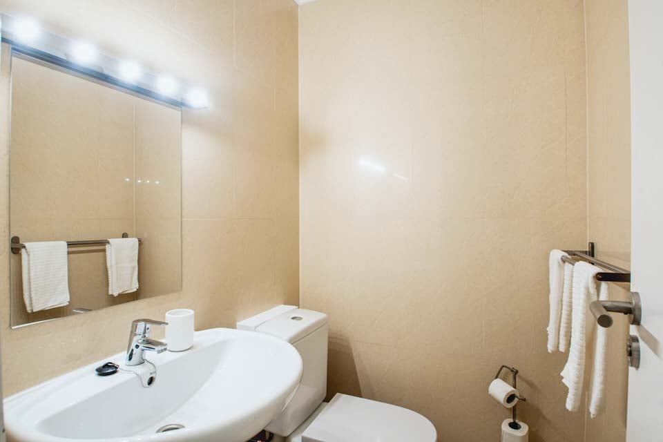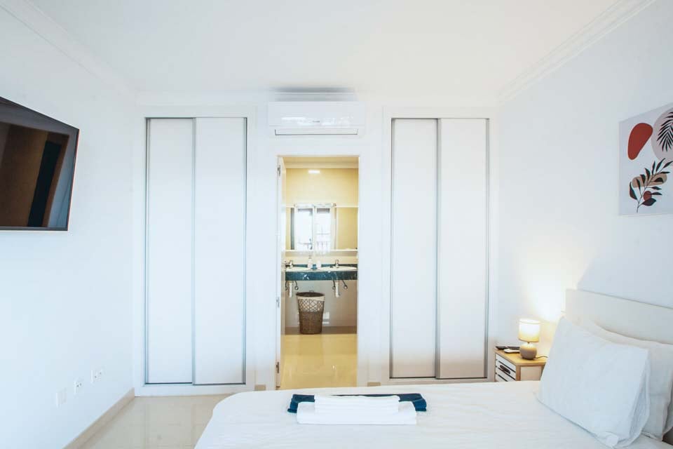 Vanaf de oprit leiden trappen naar de begane grond. Hier komt u in een lichte hal met een glazen koepelplafond, waardoor er veel natuurlijk licht binnenvalt. Rechts van de ingang vindt u een tweepersoonsslaapkamer met een eigen doucheruimte en een gastentoilet. Loop door en u komt in een moderne keuken, voorzien van de nieuwste apparatuur en een eettafel. Direct naast de keuken ligt nog een slaapkamer met een eigen badkamer en openslaande deuren naar een overdekt terras. De overige kamers bevinden zich op de benedenverdieping en zijn bereikbaar via een interne trap. Het kloppende hart van het pand is de lounge, de ideale plek om te ontspannen. Er is een smart-tv, een pooltafel en een selectie boeken ter vermaak. De overige vier slaapkamers bevinden zich op deze verdieping, waarvan er drie zijn voorzien van airconditioning* en die allemaal een familiebadkamer delen. Als extraatje krijgt u bij Vista Rey gratis badhanddoeken, het hele jaar door verwarmde zwembad en bij aankomst een welkomstpakket.