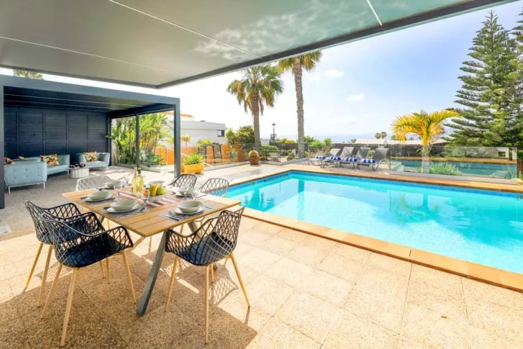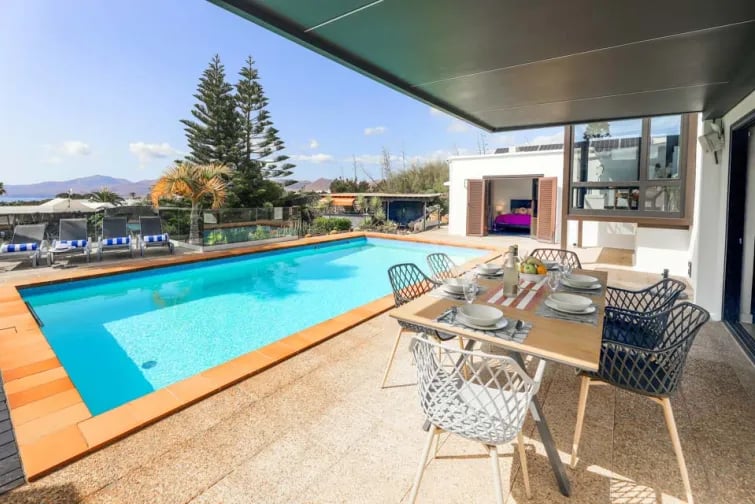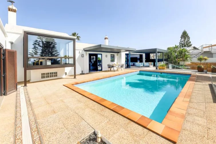 Het prachtige Cois Farraige mag u niet missen. Dit unieke pand met vier slaapkamers ligt in Puerto del Carmen en is een absolute aanrader. Het terras bij het zwembad is absoluut de ideale plek, met stoffen banken met knoopsluiting onder een moderne pergola die een prachtig uitzicht op de bergen bieden. Het is de ideale plek voor een kopje koffie in de ochtend of om te ontspannen in de schaduw met een goed boek. Voor dineren in de buitenlucht is er een overdekt terras met moderne zitplaatsen, en op het lager gelegen terras vindt u ook een barbecue- en bargedeelte. De prachtig ontworpen, op vulkanen geïnspireerde tuin beschikt over exotische planten en een hottub* voor net dat beetje extra.