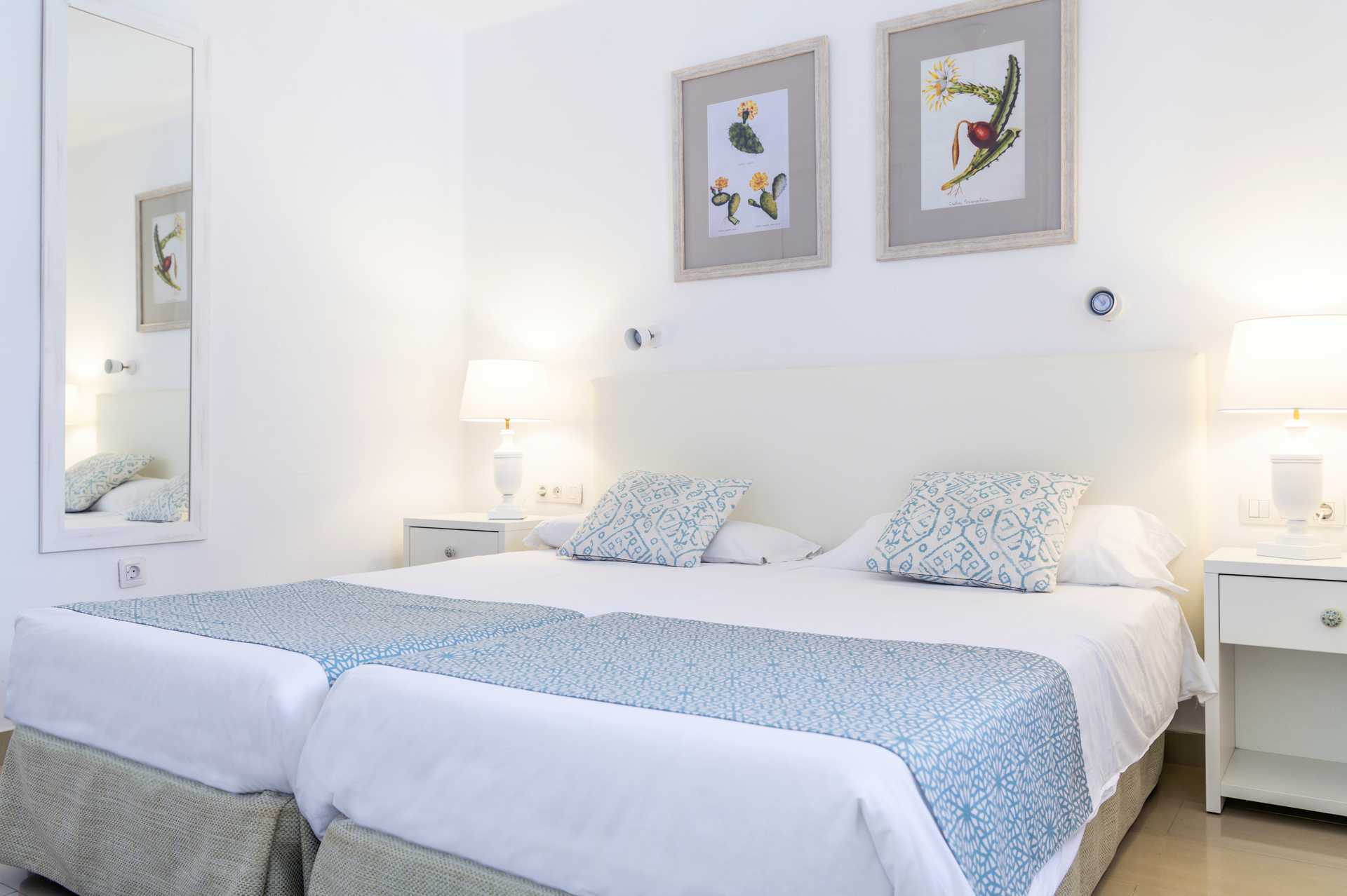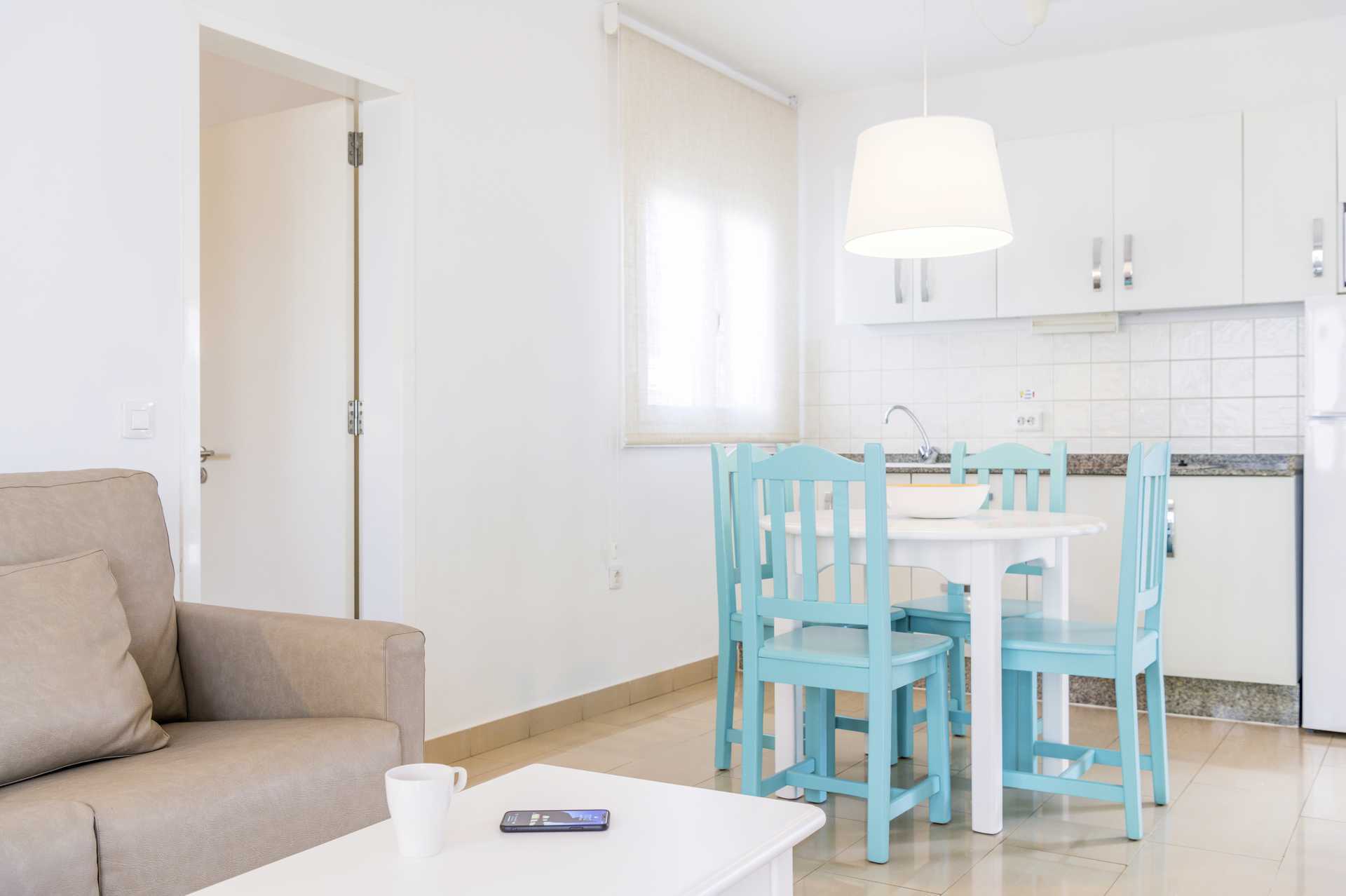 Mooie tweekamerappartementen met een aparte slaapkamer met twee bedden en een gecombineerde woonkamer en minikeuken. Mogelijkheid van extra bed op slaapbank. Kookplaten, koelkast, magnetron, waterkoker, broodrooster, koffiezetapparaat en citruspers en basis keukenuitrusting. TV met satellietkanalen. Strijkfaciliteiten. Plafondventilator in woonkamer en slaapkamer. Betegelde vloeren. Gratis wifi. Kluisje tegen betaling. Haardroger. Bad/douche en toilet. Balkon of terras. Schoonmaak 5 keer per week.