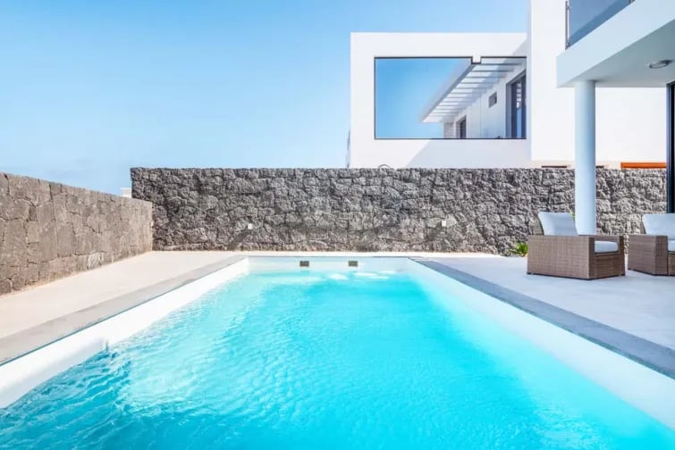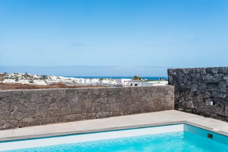 Villa Bernadette beschikt over een verwarmd privézwembad* en biedt het ideale terras voor heerlijke dagen buiten. Geniet van de zon op een van de ligstoelen of ontspan op de comfortabele banken met een goed boek. Dit afgesloten terras met zijn muren van vulkanisch gesteente biedt uitzicht op het rustieke landschap met in de verte de bergen en de zee. Voor dineren in de buitenlucht is er een eethoek met parasol aanwezig, waar u in de schaduw van kunt genieten. Ook staat er een barbecue klaar waarop u culinaire hoogstandjes kunt grillen. Via de terrasdeuren die van de vloer tot het plafond reiken, komt u vanaf het terras binnen in een moderne en stijlvolle open woon- en keukenruimte. Deze ruime kamer met witgekalkte muren is ingericht in zwart-wit en beschikt over koele airconditioning en modern meubilair. Op de begane grond bevindt zich ook slaapkamer nummer één: een tweepersoonskamer met openslaande deuren naar het terras en een eigen douche. Op de eerste verdieping vinden we de overige twee slaapkamers, één met een tweepersoonsbed en één met twee eenpersoonsbedden, beide met een eigen badkamer.