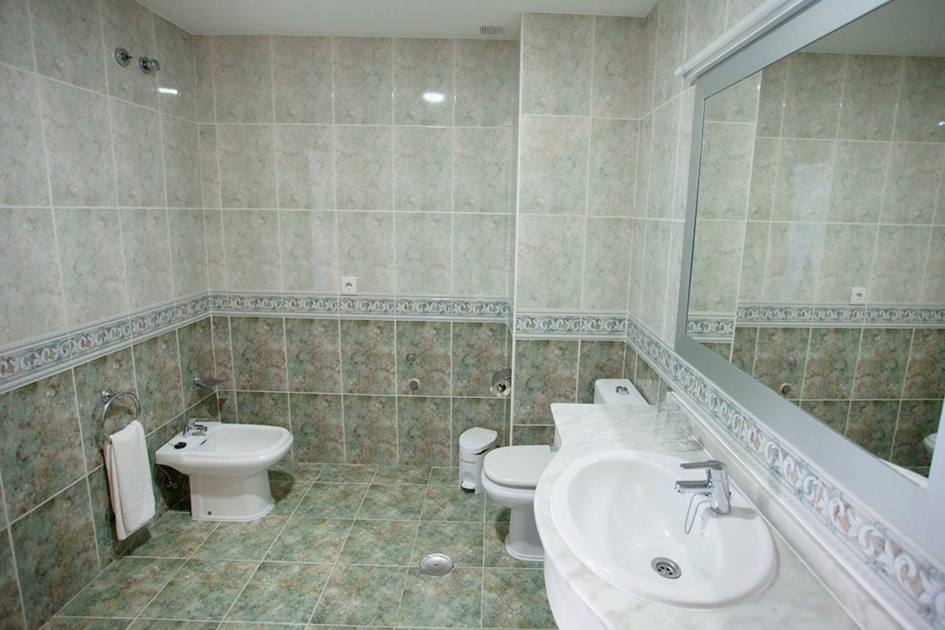 Driekamerappartement op de begane grond met balkon, deels met uitzicht op het zwembad, deels met uitzicht op de golfbaan en deels met onbekend uitzicht. De appartementen hebben een slaapkamer/minikeuken op de bovenverdieping en een aparte slaapkamer en nog een woonkamer/minikeuken op de begane grond. Twee eenpersoonsbedden in de slaapkamers. Minikeuken met koelkast, kookplaten, koffiezetapparaat, waterkoker, broodrooster en eenvoudige keukenapparatuur. Wifi en kluis tegen betaling. Plafondventilator. Tv met internationale zenders. Föhn. Twee badkamers, één met douche en toilet en één met bad en toilet. Schoonmaak 5 keer/week.